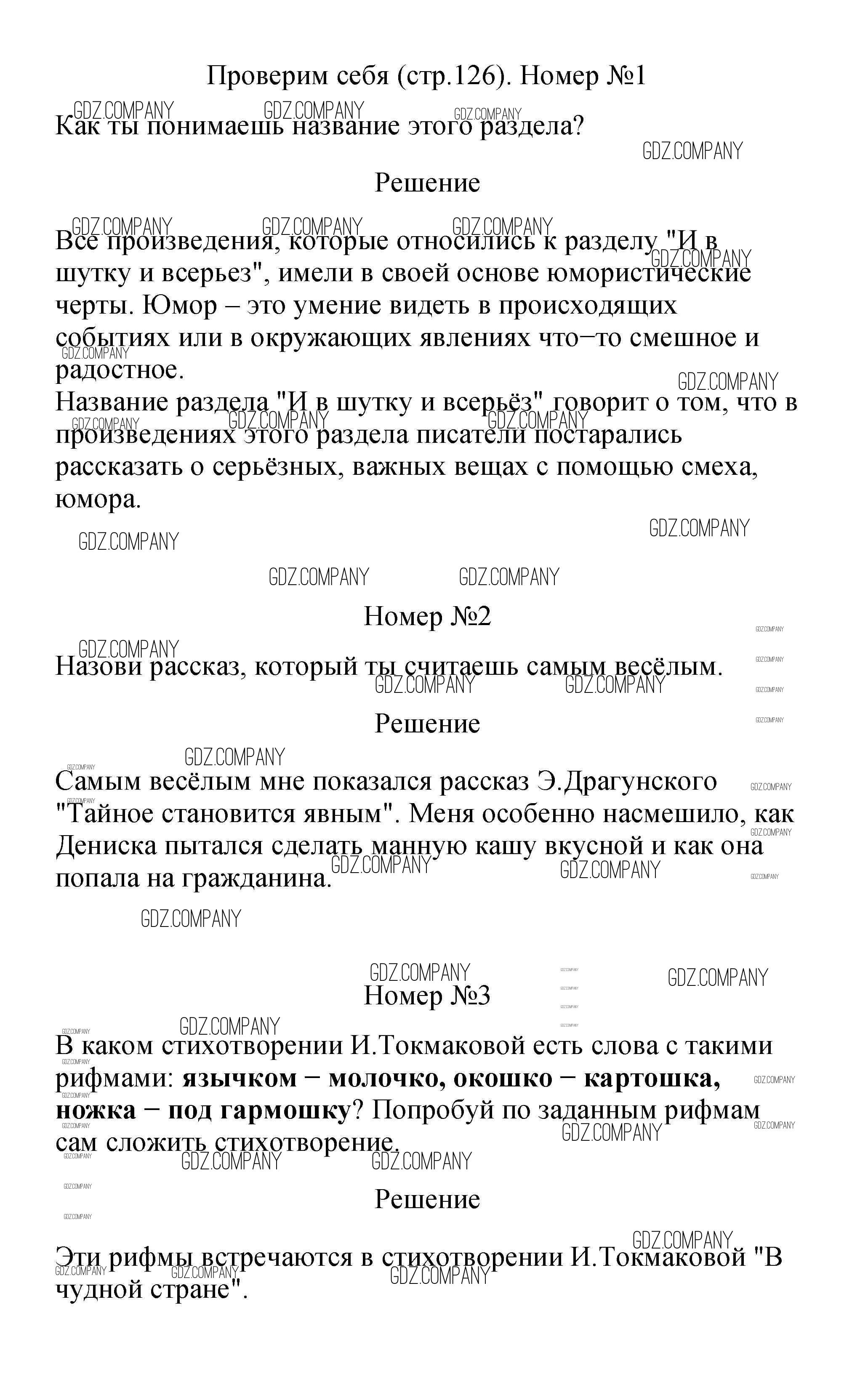 Здесь готовые ответы по Литературе за 2 (второй) класс от Климанова, Горецкий, Голованова Учебник Школа России  (издательство: Просвещение от 2018 г.) № 126