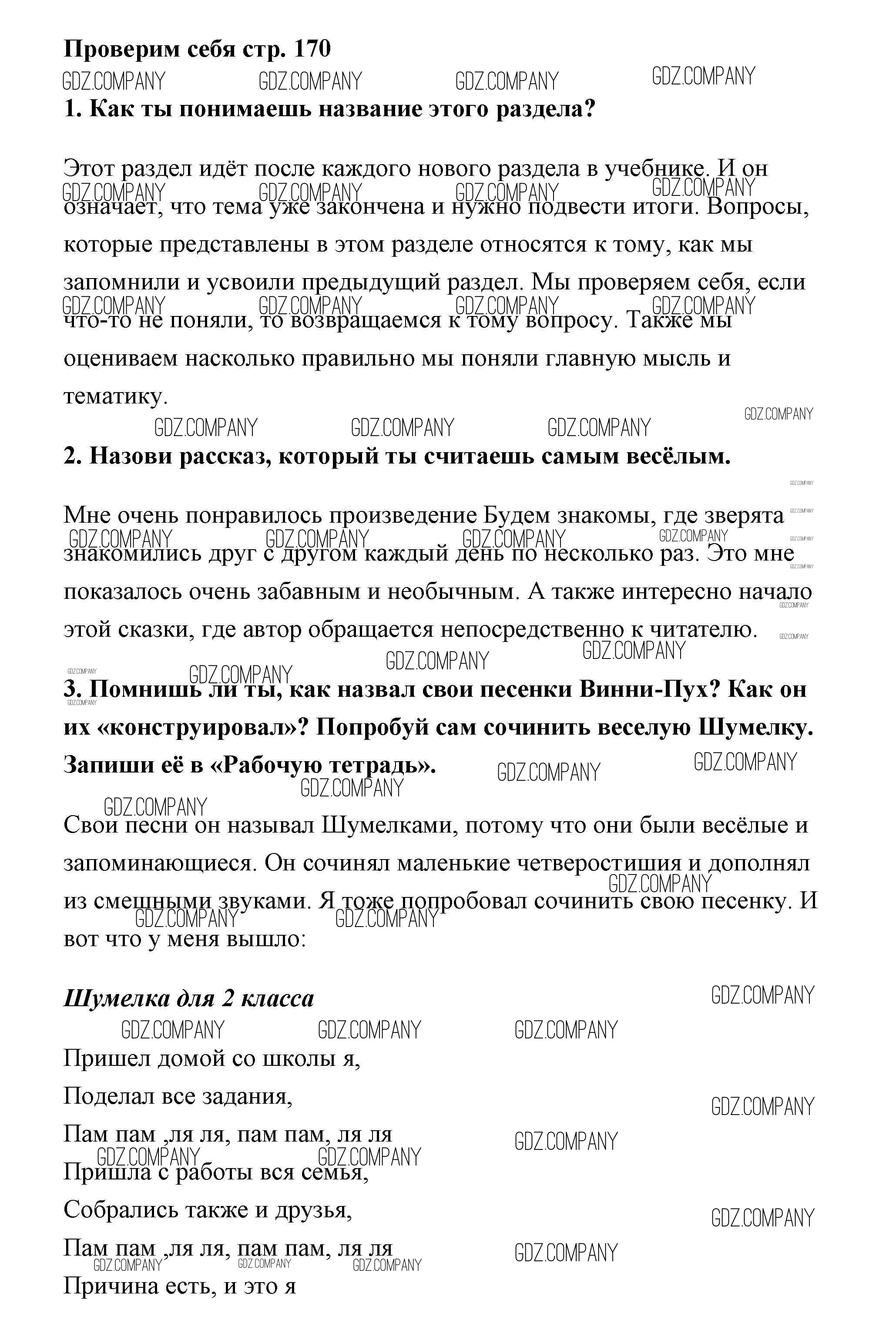 Здесь готовые ответы по Литературе за 2 (второй) класс от Климанова, Горецкий, Голованова Учебник Школа России  (издательство: Просвещение от 2018 г.) № 170