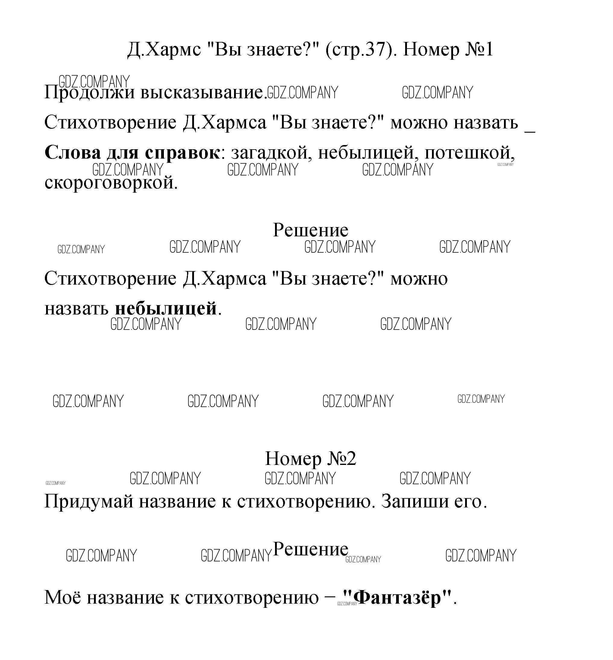 Здесь готовые ответы по Литературе за 2 (второй) класс от Тихомирова Рабочая тетрадь УМК  (издательство: Экзамен от 2021 г.) № 37