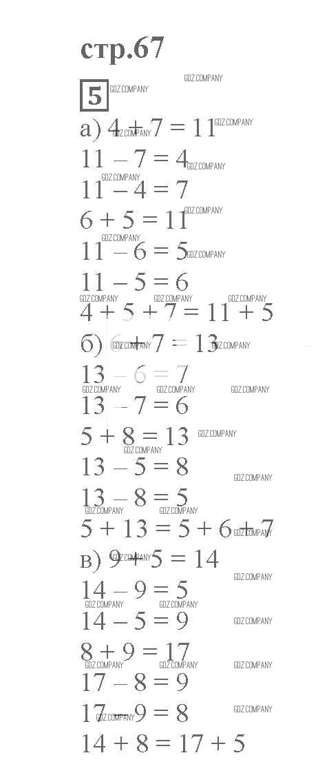 часть 1 / сложение и вычитание до 20 / стр. 67 / 5