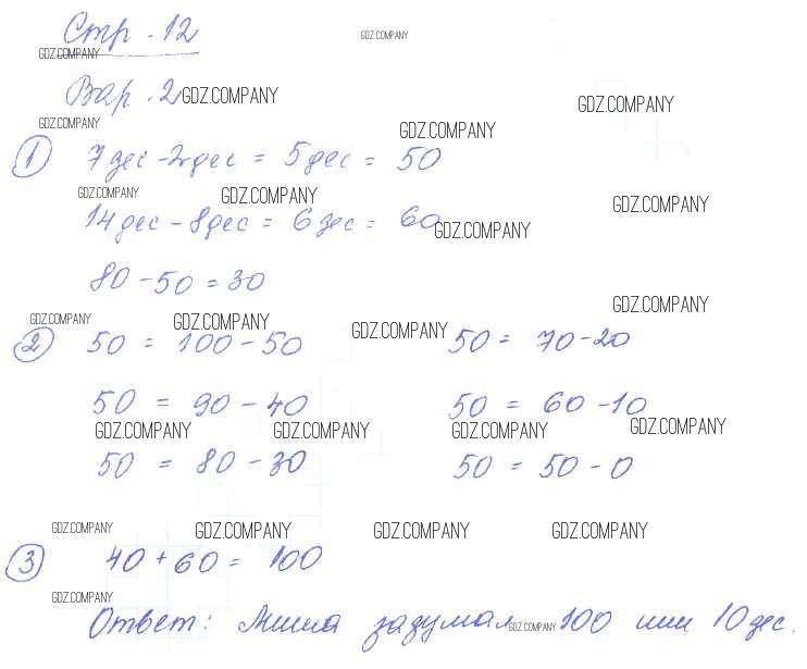 Здесь готовые ответы по Математике за 2 (второй) класс от Чуракова Контрольные и проверочные работы Перспективная начальная школа (издательство: Академкнига от 2017 г.) № 12