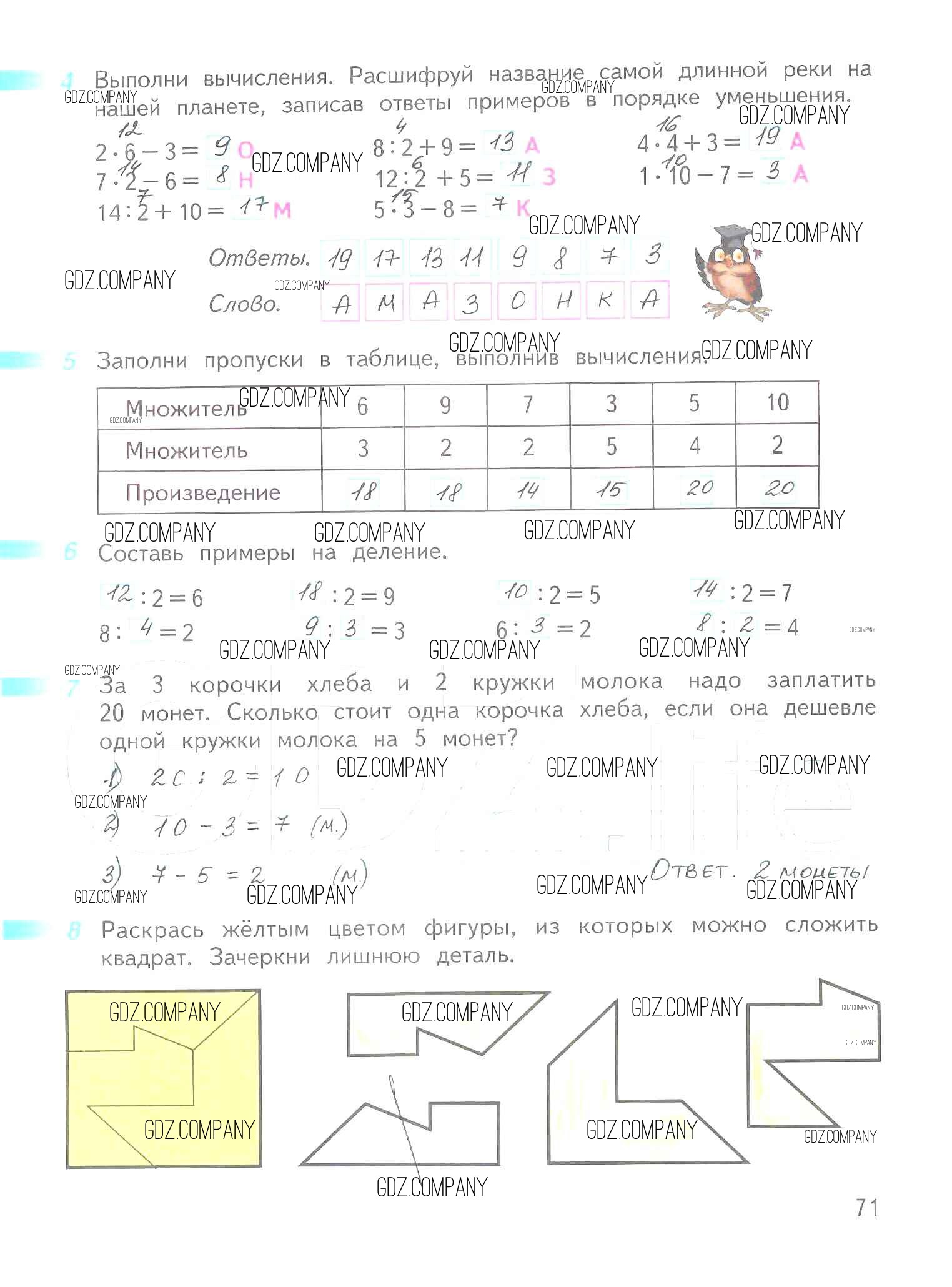 Здесь готовые ответы по Математике за 2 (второй) класс от Дорофеев, Миракова, Бука Рабочая тетрадь Перспектива (издательство: Просвещение от 2015 г.) № 71
