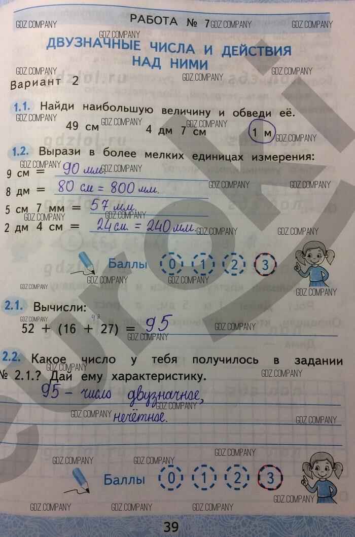 Здесь готовые ответы по Математике за 2 (второй) класс от Гусева, Курникова, Останина Зачётные работы УМК (издательство: Экзамен от 2016 г.) № 39