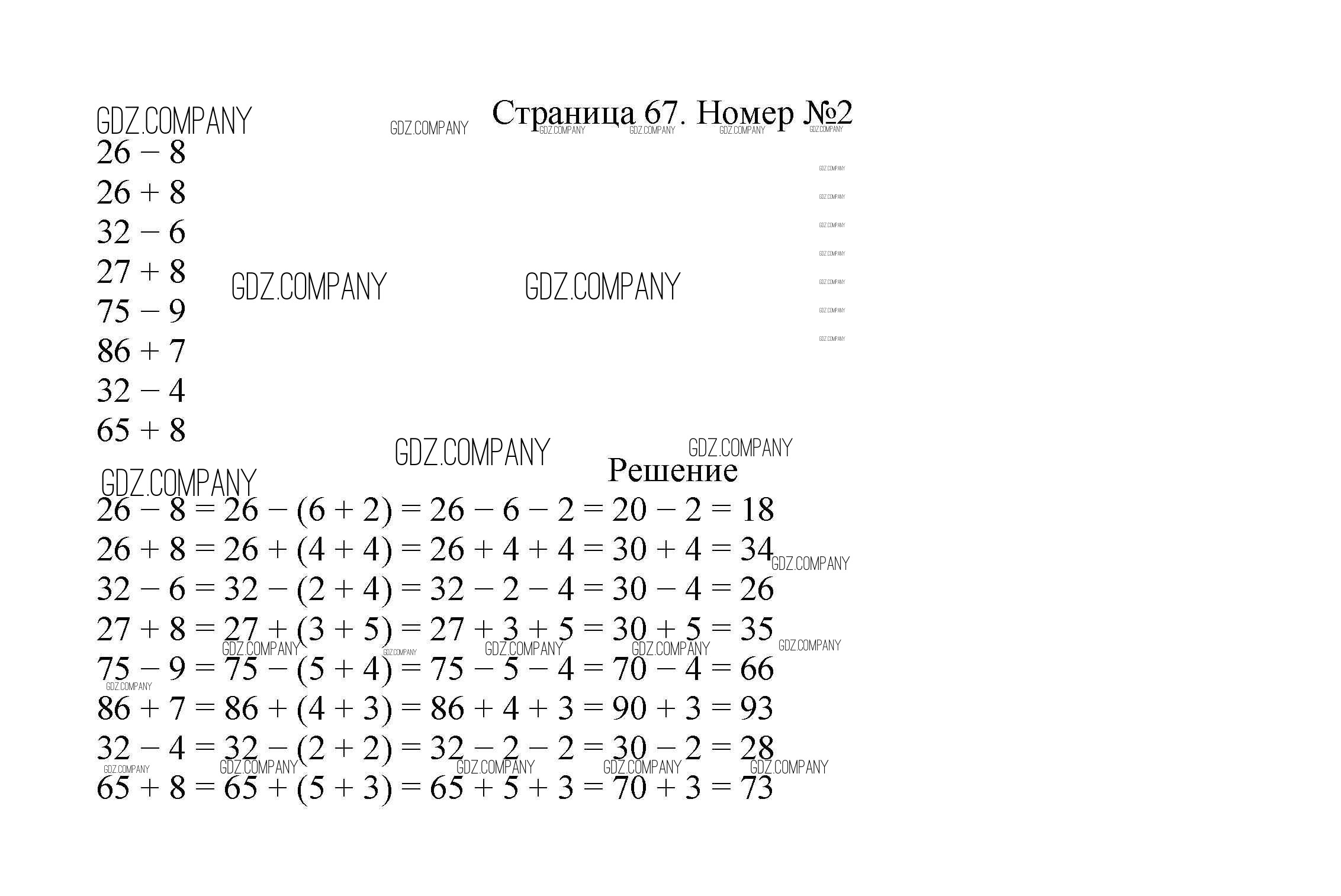 Здесь готовые ответы по Математике за 2 (второй) класс от Моро, Бантова, Бельтюкова Учебник Школа России (издательство: Просвещение от 2015 г.) № 67