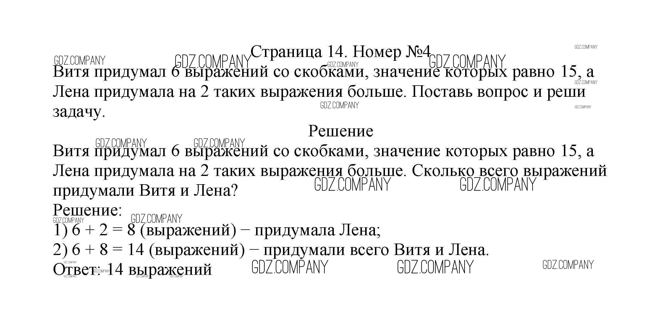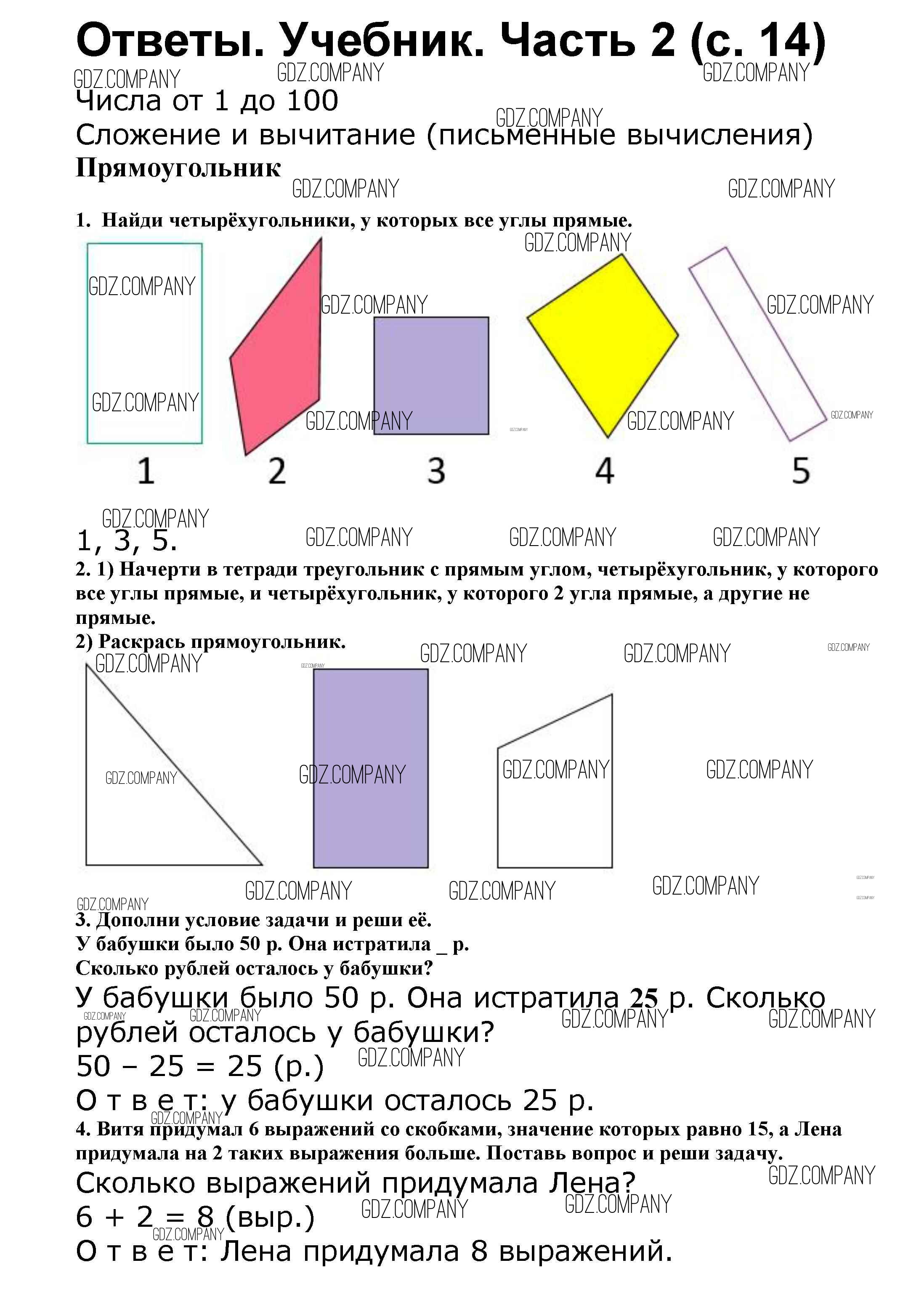 Здесь готовые ответы по Математике за 2 (второй) класс от Моро, Бантова, Бельтюкова Учебник Школа России (издательство: Просвещение от 2015 г.) № 14
