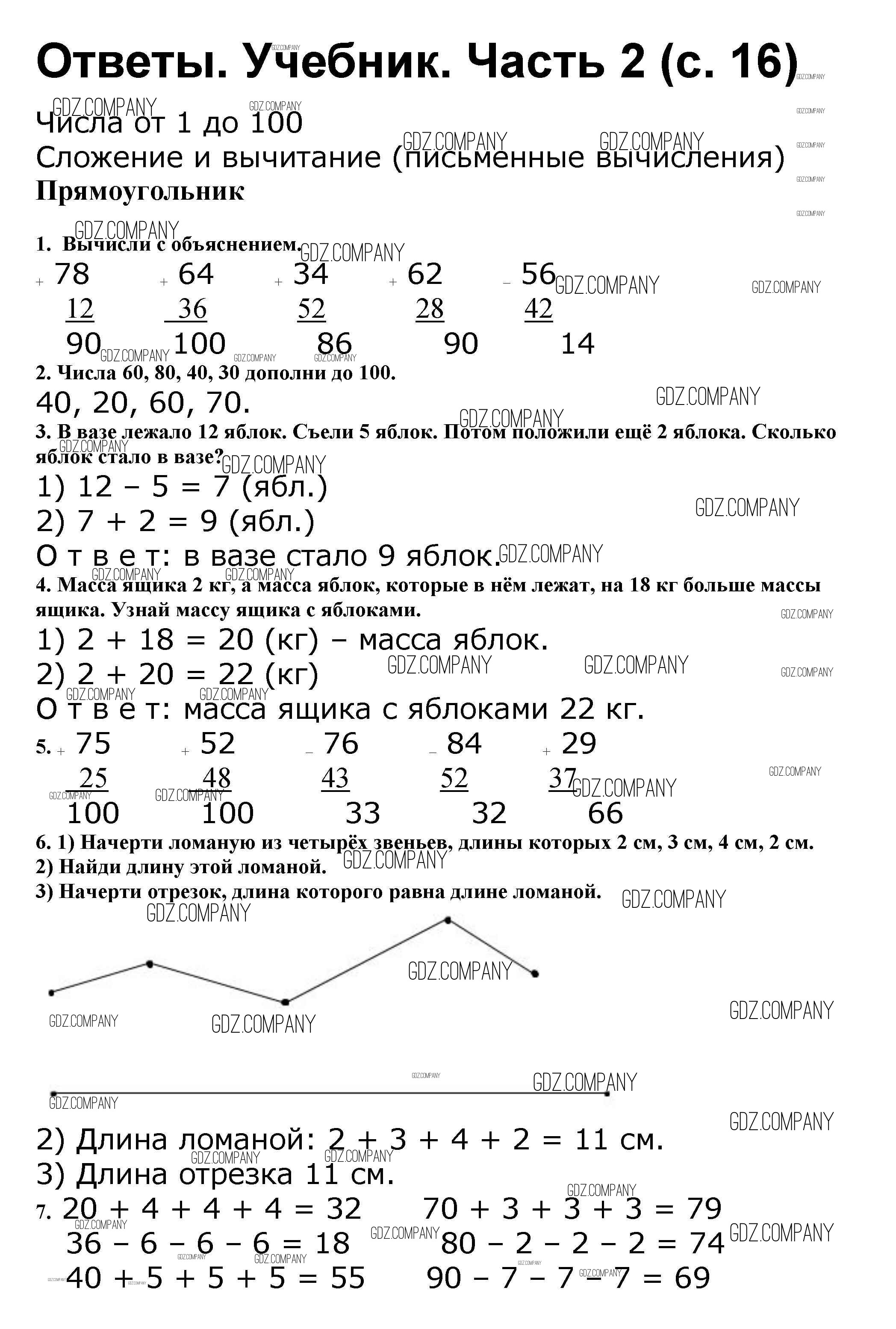 Здесь готовые ответы по Математике за 2 (второй) класс от Моро, Бантова, Бельтюкова Учебник Школа России (издательство: Просвещение от 2015 г.) № 16