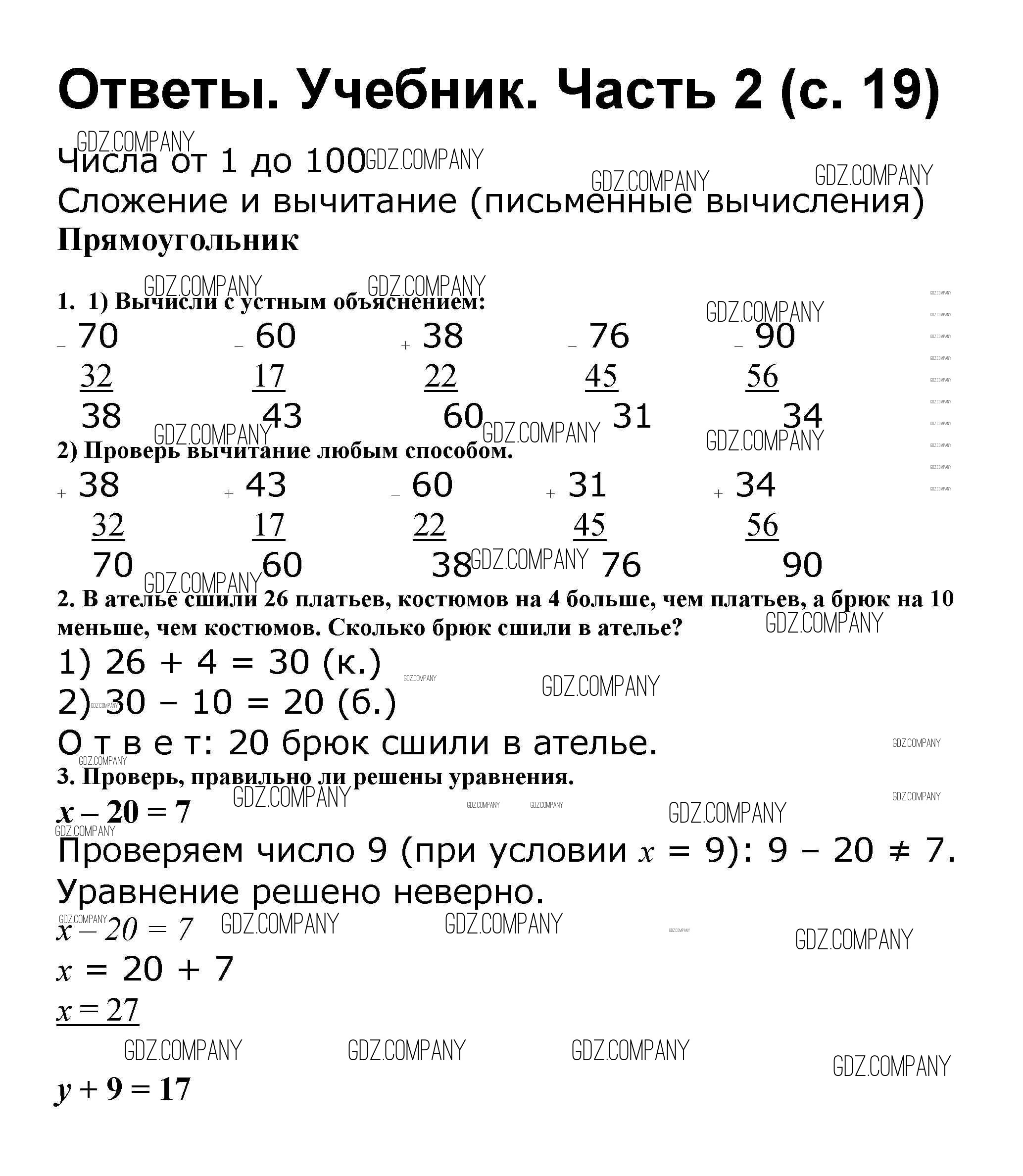 Здесь готовые ответы по Математике за 2 (второй) класс от Моро, Бантова, Бельтюкова Учебник Школа России (издательство: Просвещение от 2015 г.) № 19