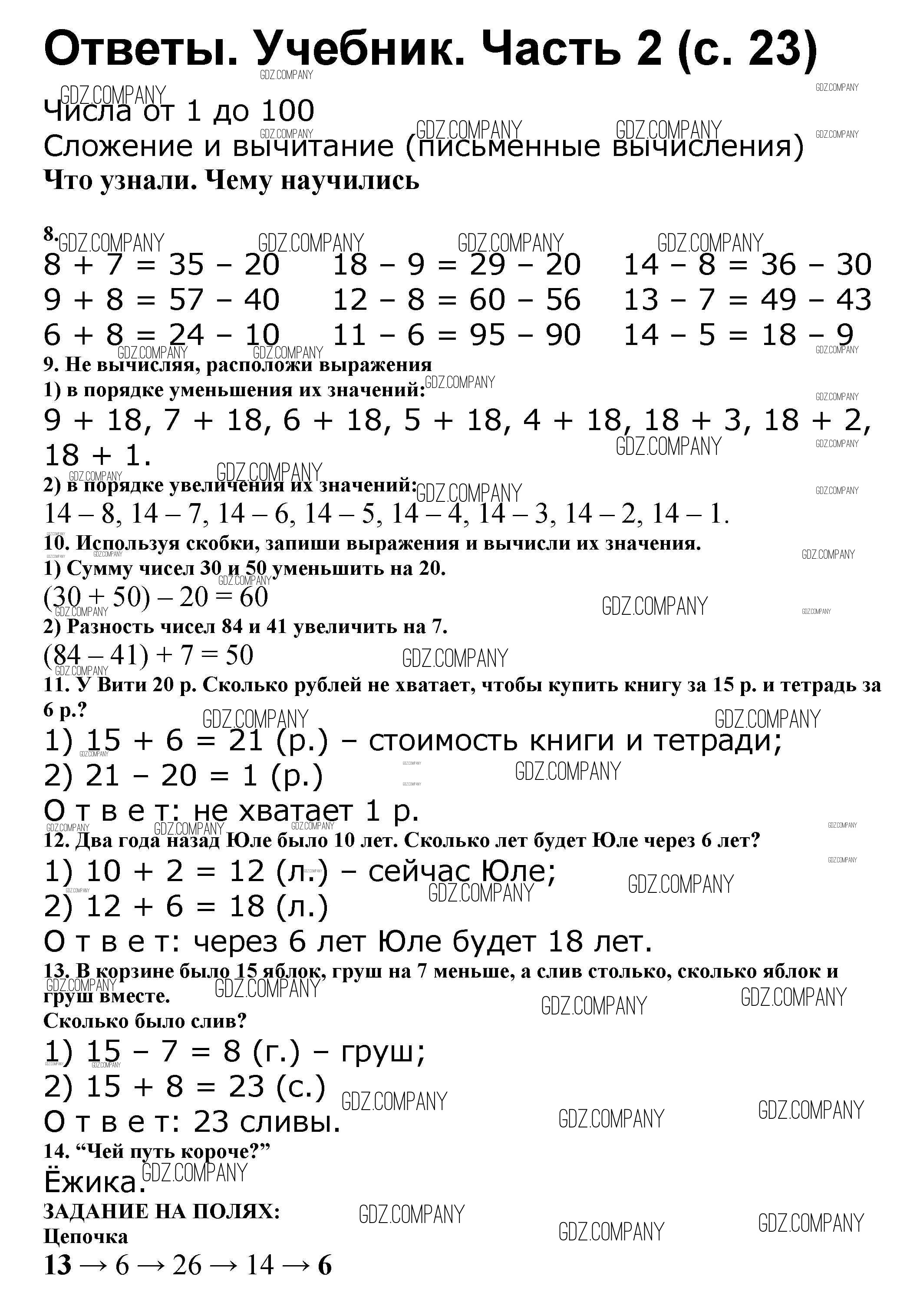 Здесь готовые ответы по Математике за 2 (второй) класс от Моро, Бантова, Бельтюкова Учебник Школа России (издательство: Просвещение от 2015 г.) № 23