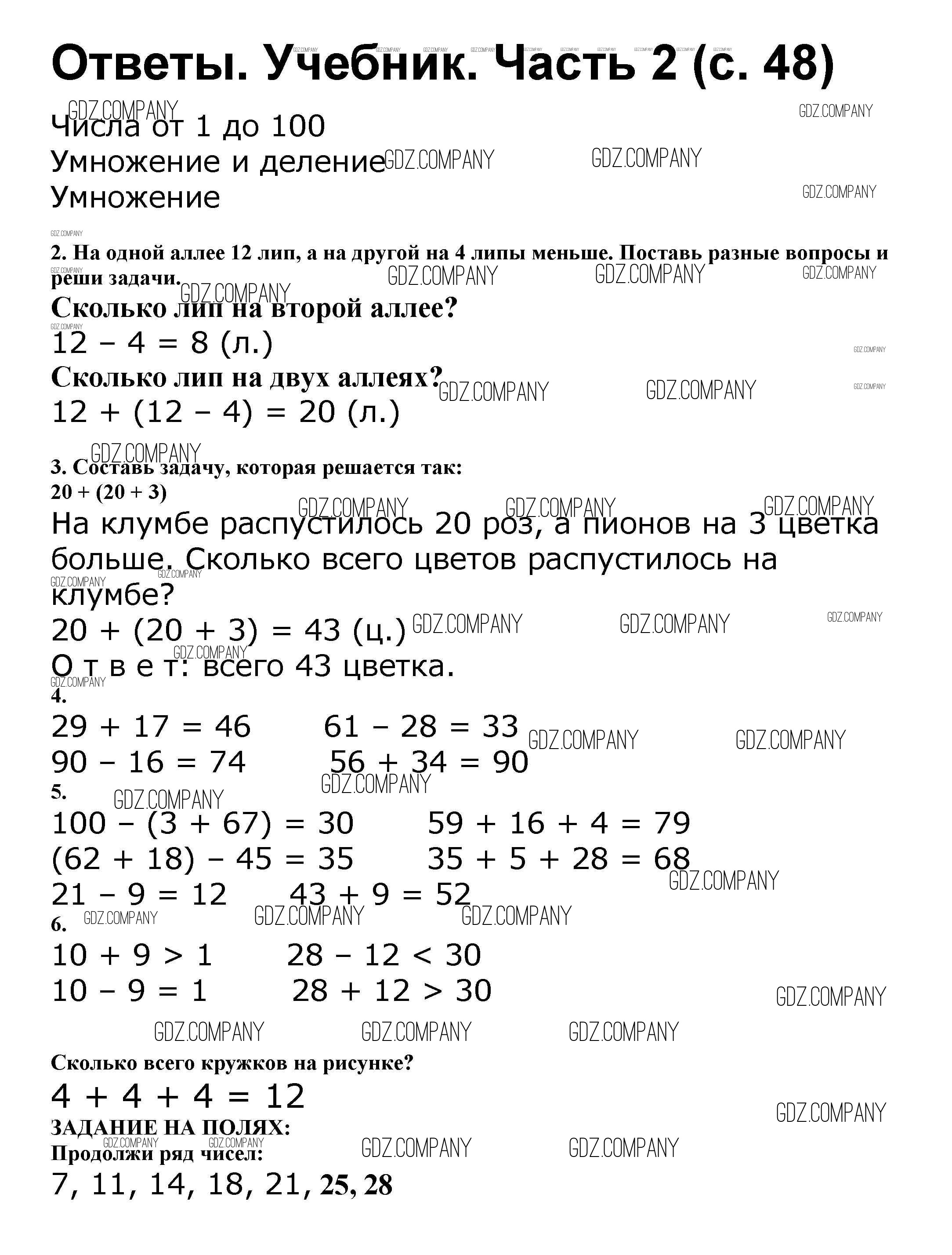 Здесь готовые ответы по Математике за 2 (второй) класс от Моро, Бантова, Бельтюкова Учебник Школа России (издательство: Просвещение от 2015 г.) № 48
