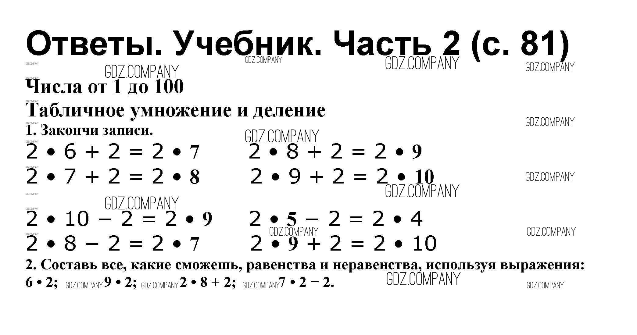 Здесь готовые ответы по Математике за 2 (второй) класс от Моро, Бантова, Бельтюкова Учебник Школа России (издательство: Просвещение от 2015 г.) № 81