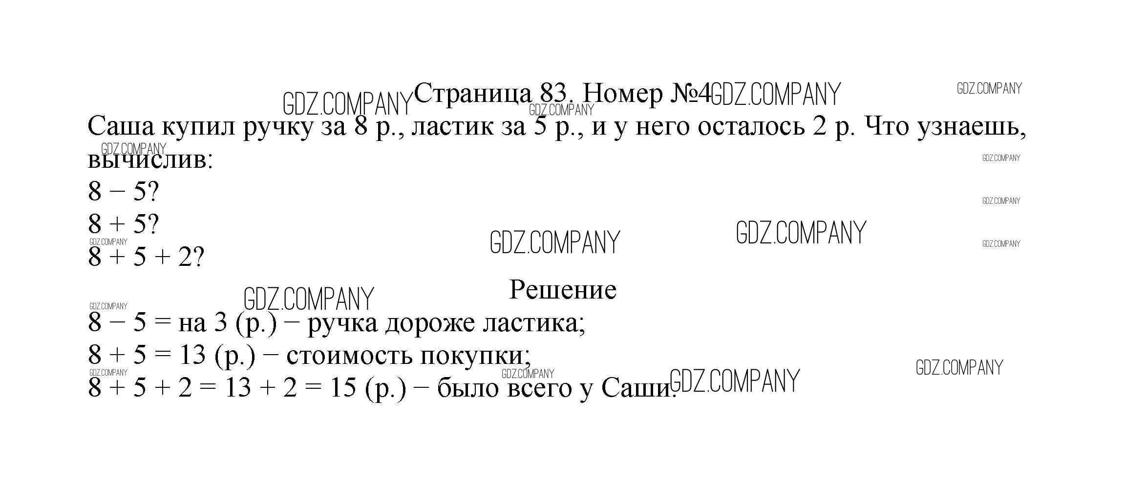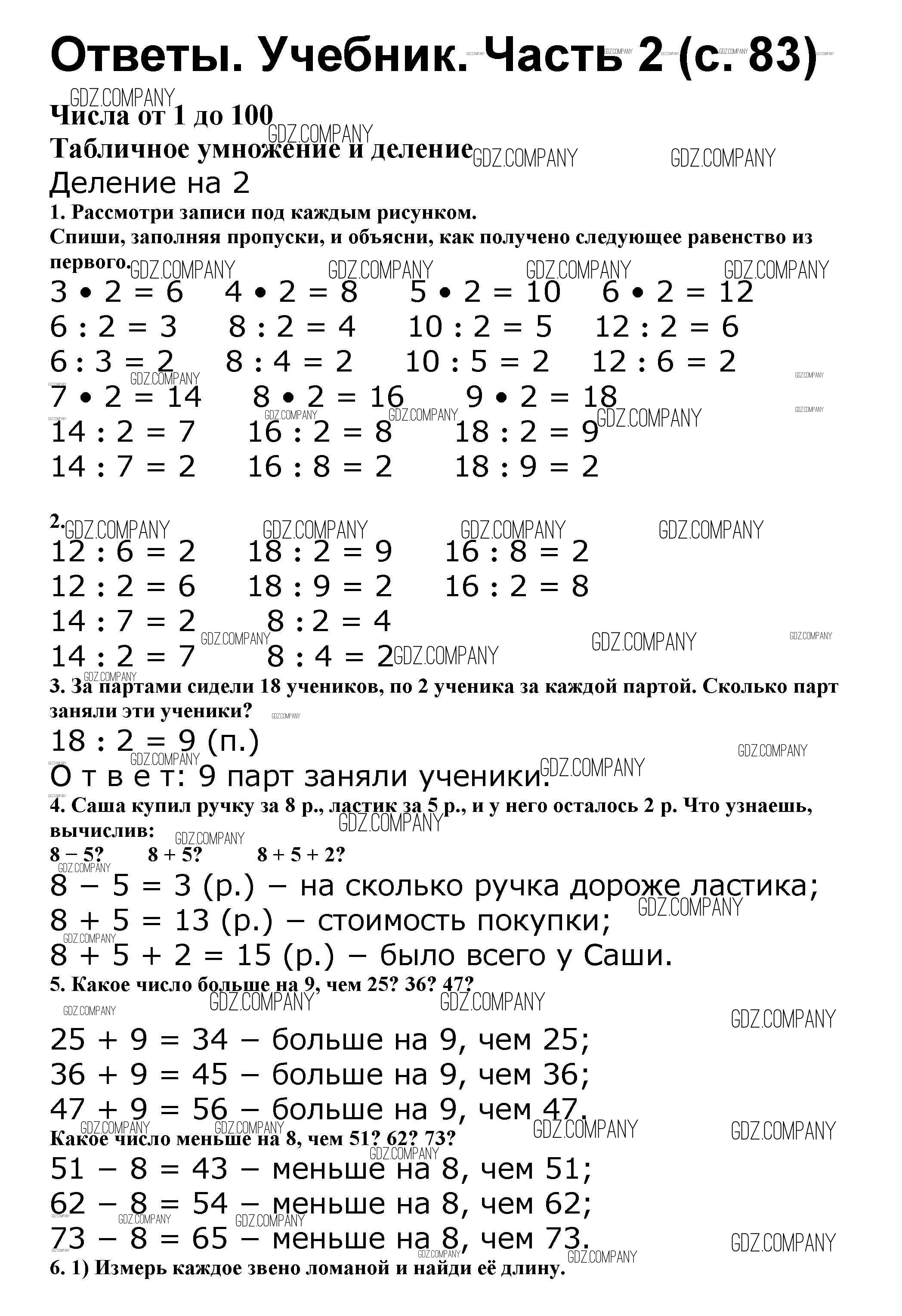 Здесь готовые ответы по Математике за 2 (второй) класс от Моро, Бантова, Бельтюкова Учебник Школа России (издательство: Просвещение от 2015 г.) № 83