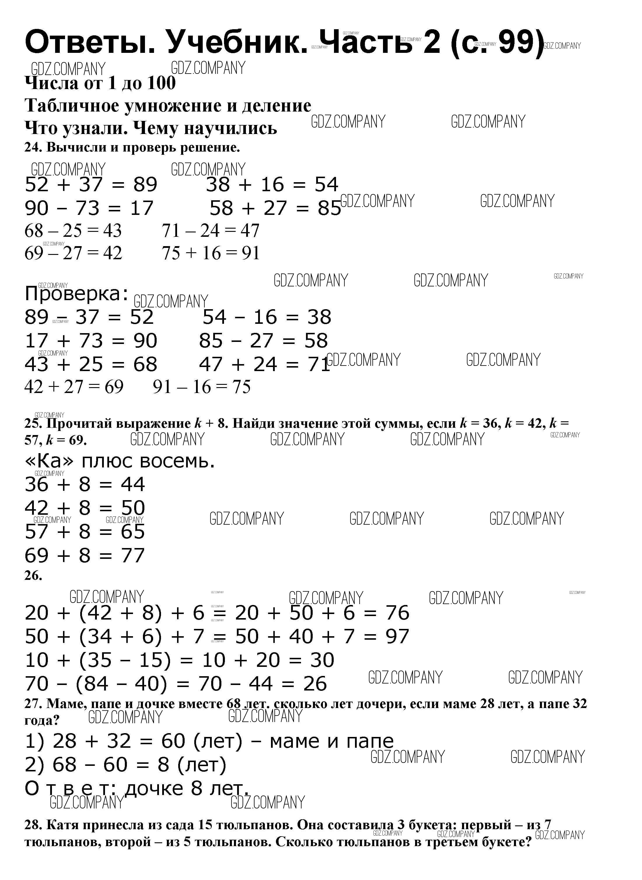 Здесь готовые ответы по Математике за 2 (второй) класс от Моро, Бантова, Бельтюкова Учебник Школа России (издательство: Просвещение от 2015 г.) № 99