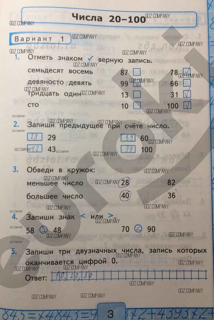 часть 1 / Числа 20—100 / Вар-1