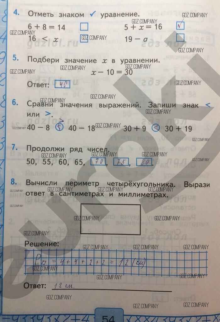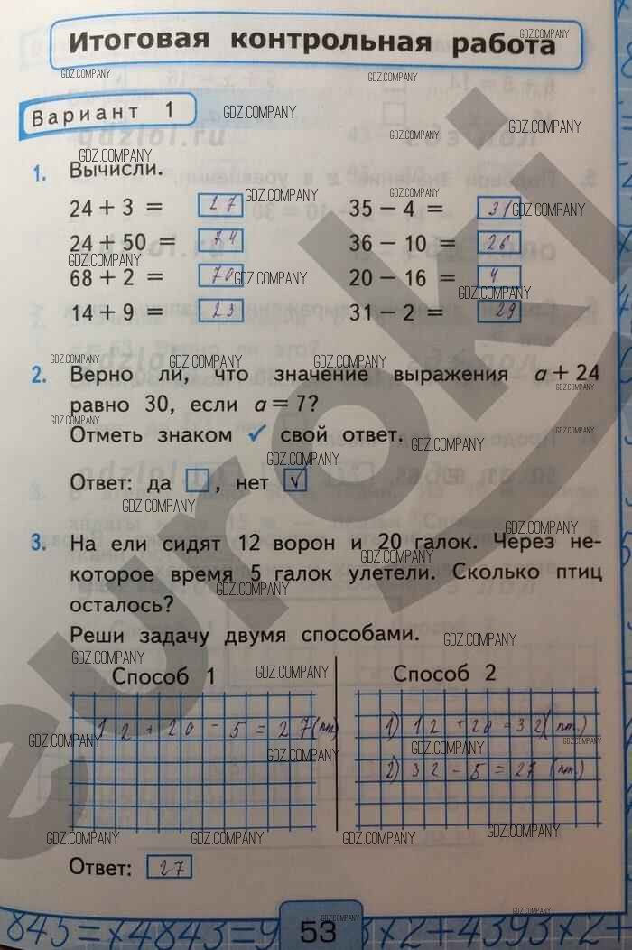 Здесь готовые ответы по Математике за 2 (второй) класс от Рудницкая Контрольные работы УМК (издательство: Экзамен от 2017 г.) № Вар-1