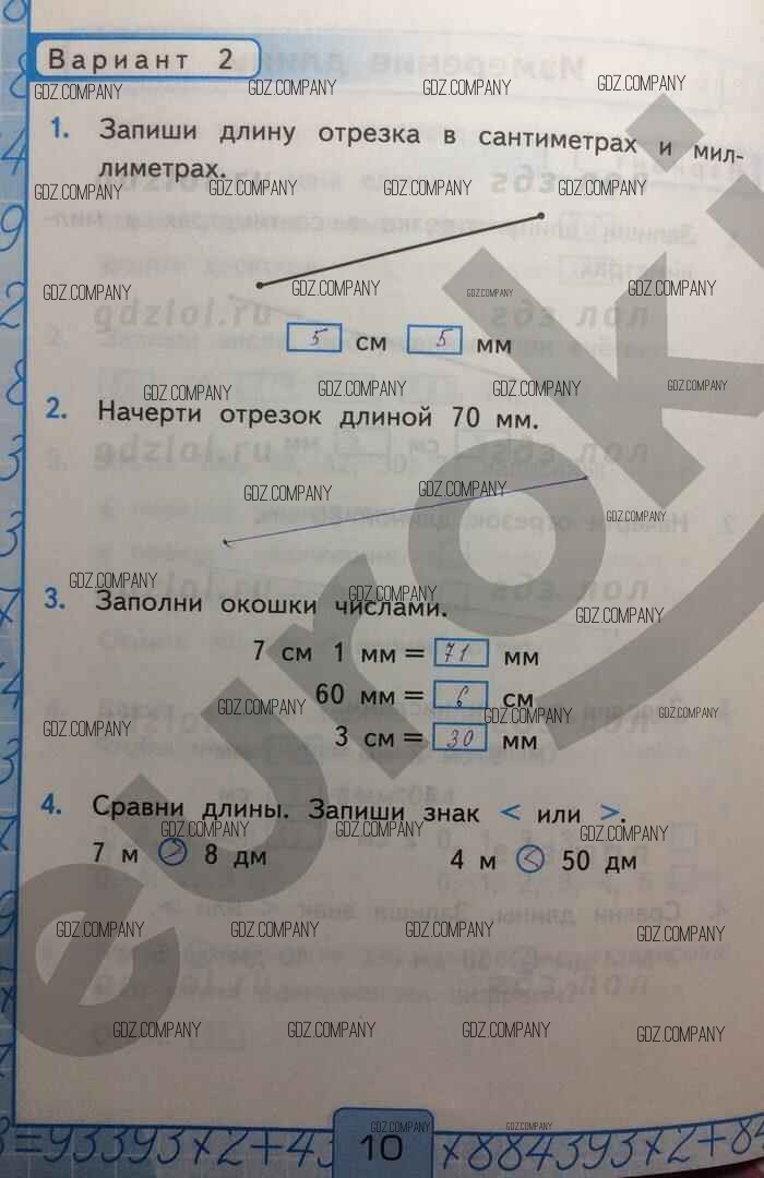 Здесь готовые ответы по Математике за 2 (второй) класс от Рудницкая Контрольные работы УМК (издательство: Экзамен от 2017 г.) № Вар-2