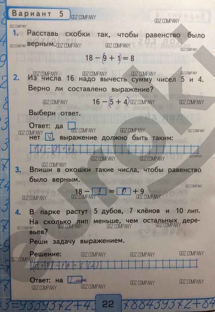 Здесь готовые ответы по Математике за 2 (второй) класс от Рудницкая Контрольные работы УМК (издательство: Экзамен от 2017 г.) № Вар-5