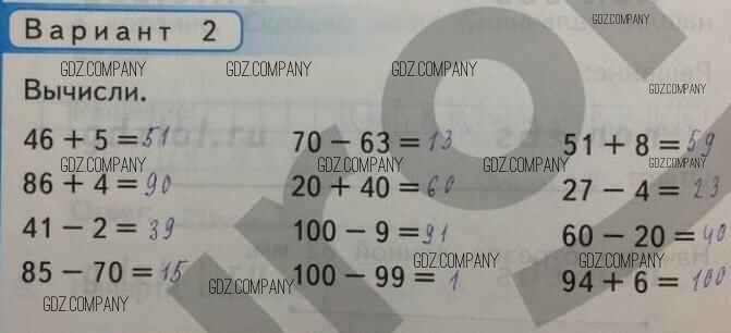 Здесь готовые ответы по Математике за 2 (второй) класс от Рудницкая Контрольные работы УМК (издательство: Экзамен от 2017 г.) № Вар-2