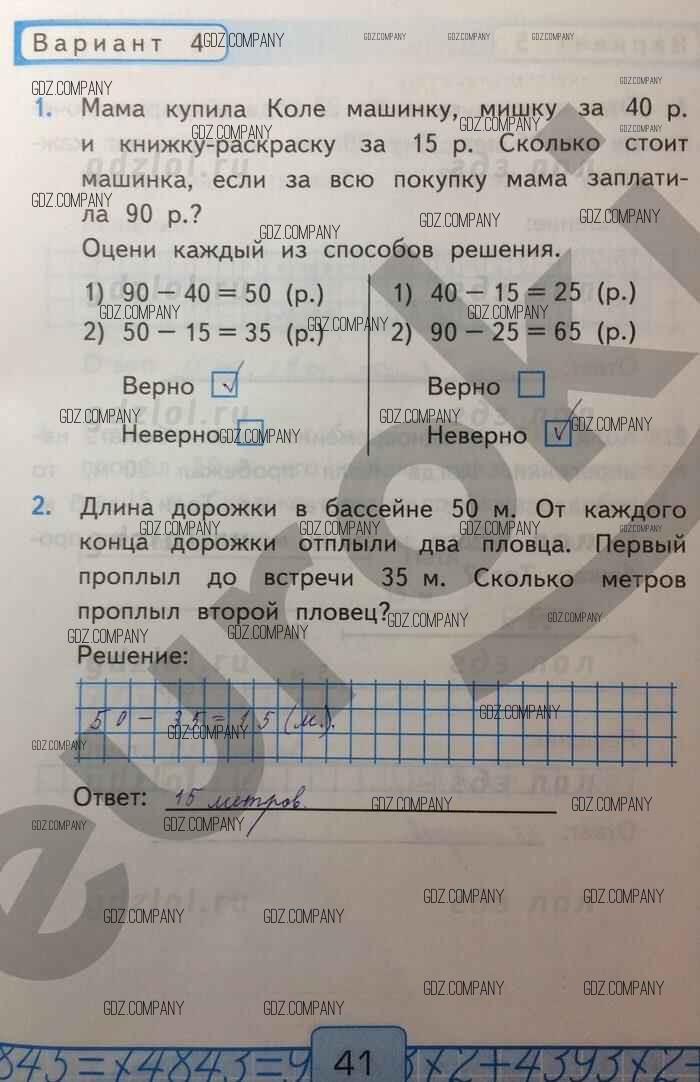 Здесь готовые ответы по Математике за 2 (второй) класс от Рудницкая Контрольные работы УМК (издательство: Экзамен от 2017 г.) № Вар-4