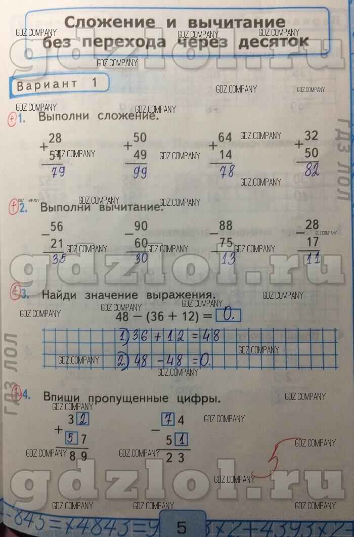 часть 2 / Сложение и вычитание без перехода через десяток / Вар-1