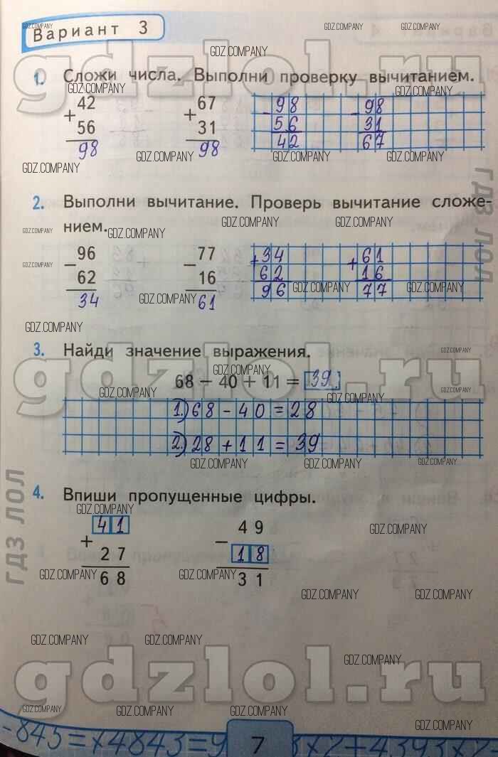 Здесь готовые ответы по Математике за 2 (второй) класс от Рудницкая Контрольные работы УМК (издательство: Экзамен от 2017 г.) № Вар-3