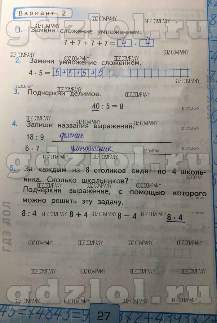 Здесь готовые ответы по Математике за 2 (второй) класс от Рудницкая Контрольные работы УМК (издательство: Экзамен от 2017 г.) № Вар-2
