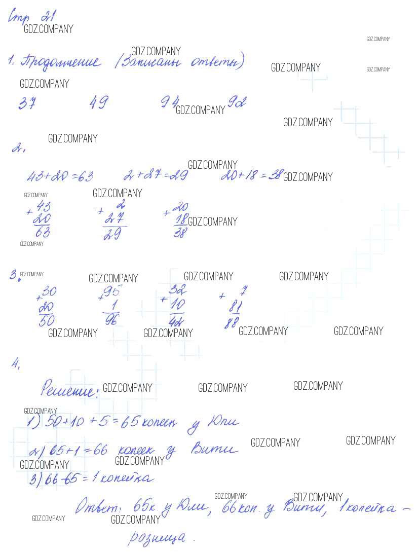 Здесь готовые ответы по Математике за 2 (второй) класс от Рудницкая, Юдачева Рабочая тетрадь Начальная школа XXI века (издательство: Вентана-граф от 2014 г.) № 21