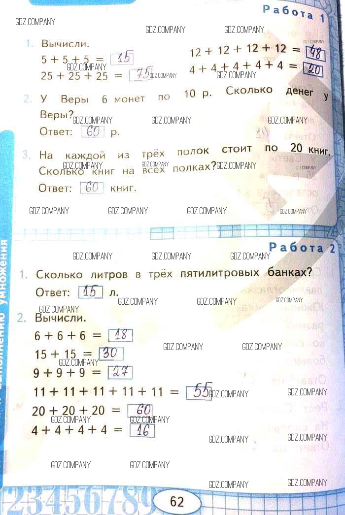 Здесь готовые ответы по Математике за 2 (второй) класс от Рудницкая Рабочая тетрадь УМК (издательство: Экзамен от 2020 г.) № 62