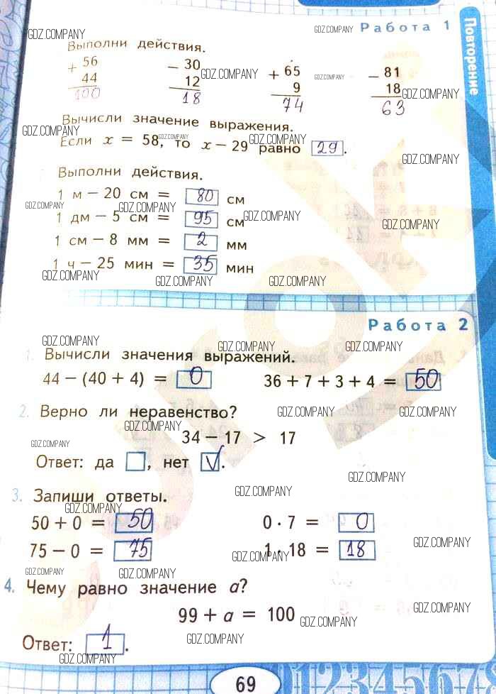 Здесь готовые ответы по Математике за 2 (второй) класс от Рудницкая Рабочая тетрадь УМК (издательство: Экзамен от 2020 г.) № 69
