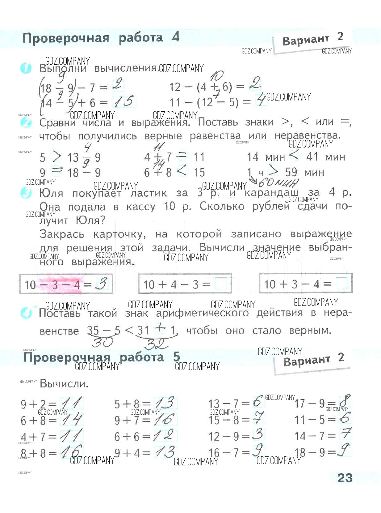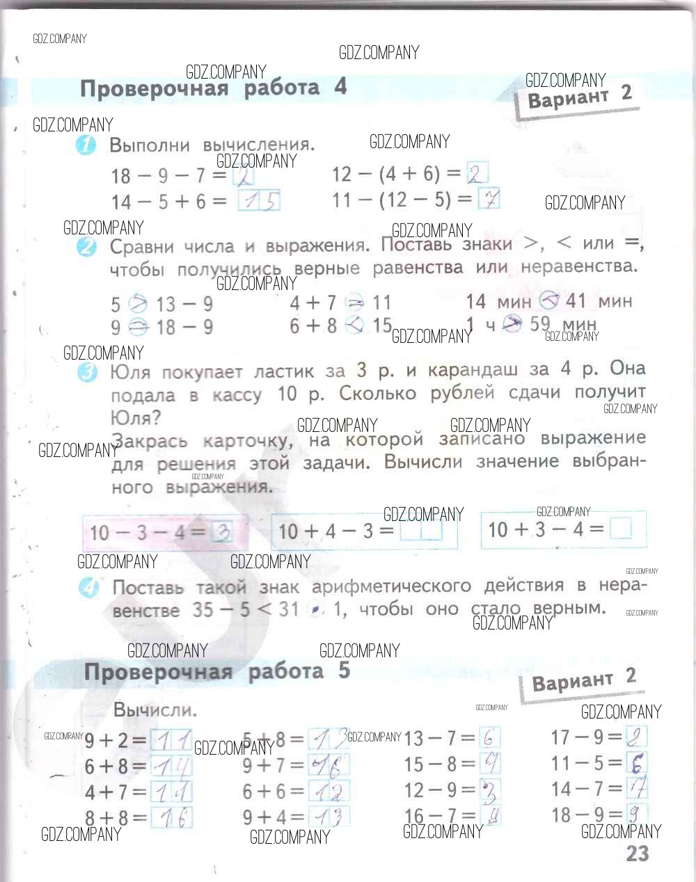 Здесь готовые ответы по Математике за 2 (второй) класс от Волкова Проверочные работы Школа России (издательство: Просвещение от 2014 г.) № 23