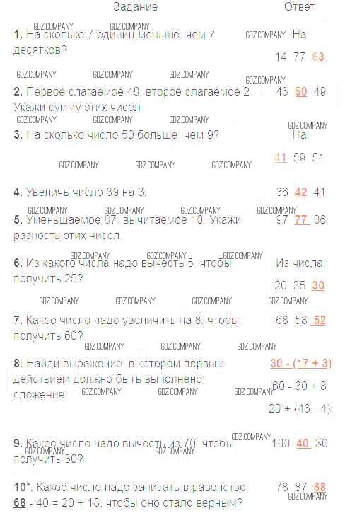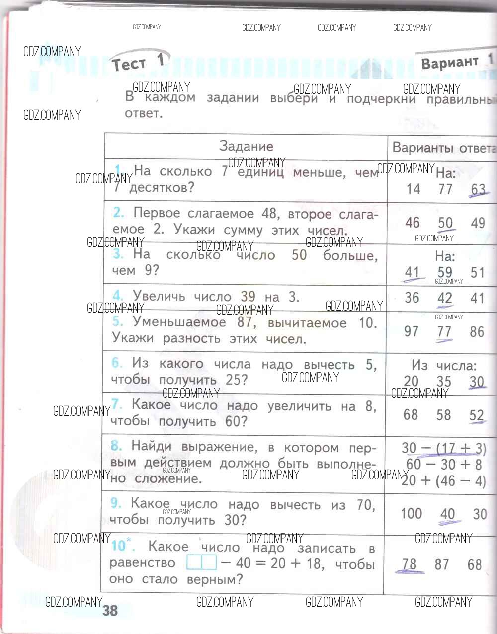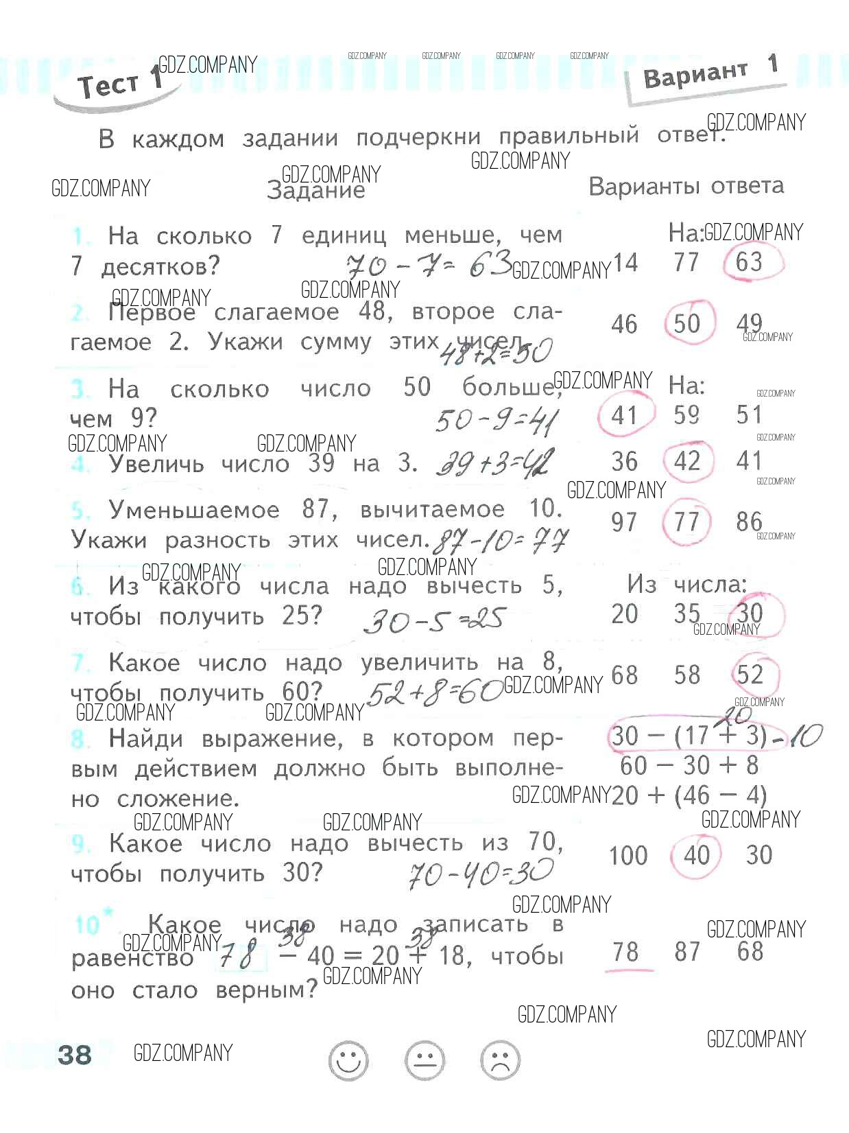 Здесь готовые ответы по Математике за 2 (второй) класс от Волкова Проверочные работы Школа России (издательство: Просвещение от 2014 г.) № 38