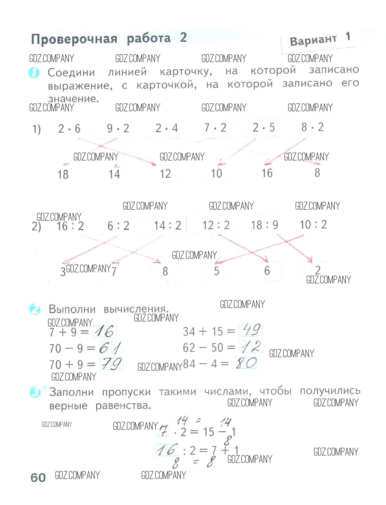 Здесь готовые ответы по Математике за 2 (второй) класс от Волкова Проверочные работы Школа России (издательство: Просвещение от 2014 г.) № 60