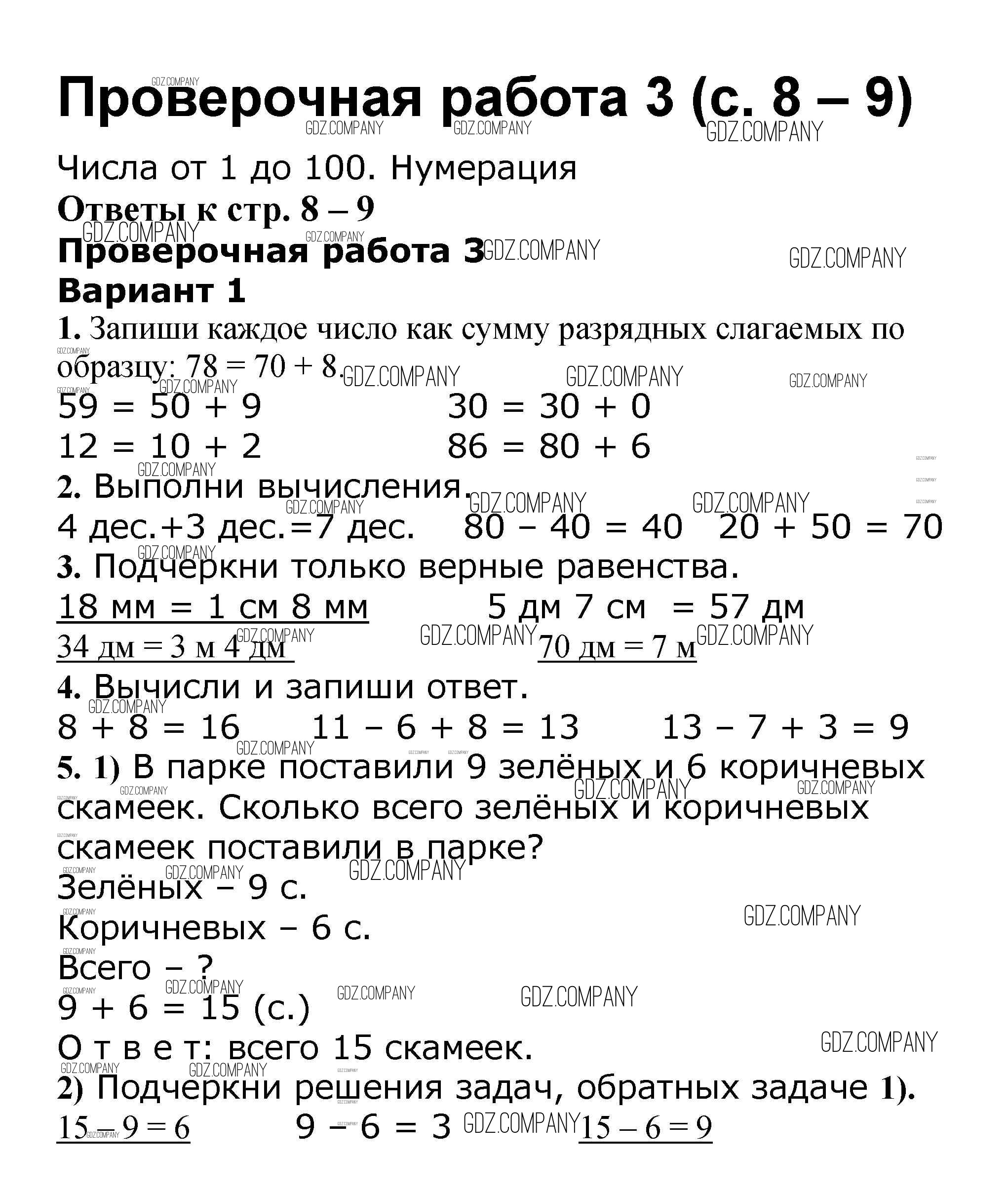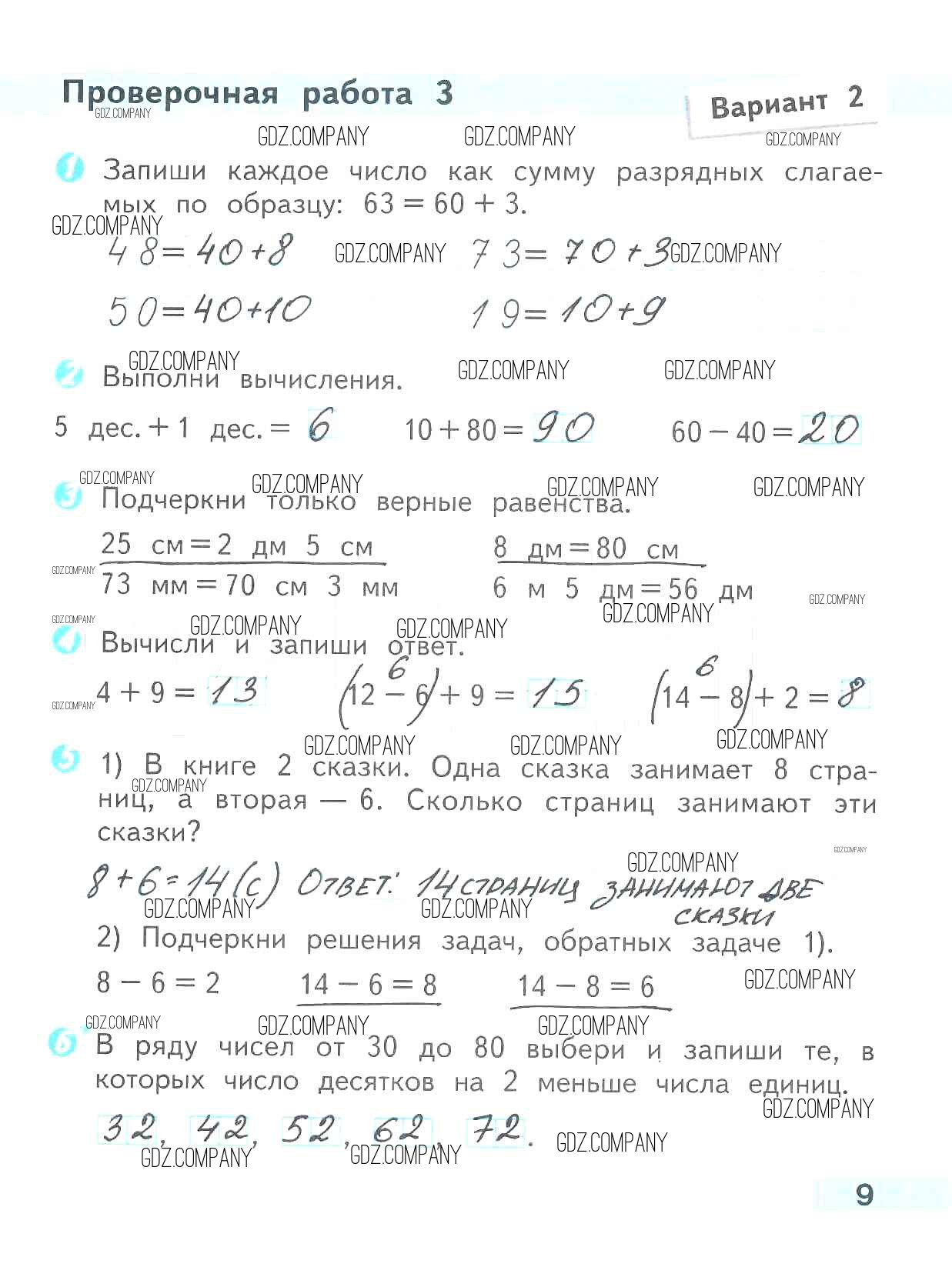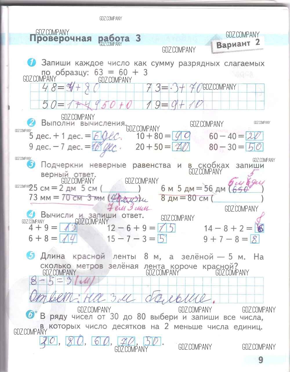 Здесь готовые ответы по Математике за 2 (второй) класс от Волкова Проверочные работы Школа России (издательство: Просвещение от 2014 г.) № 9