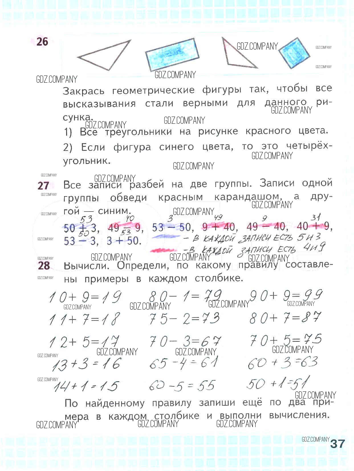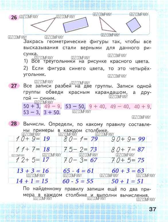 Здесь готовые ответы по Математике за 2 (второй) класс от Волкова, Моро Рабочая тетрадь Школа России (издательство: Просвещение от 2016 г.) № 37