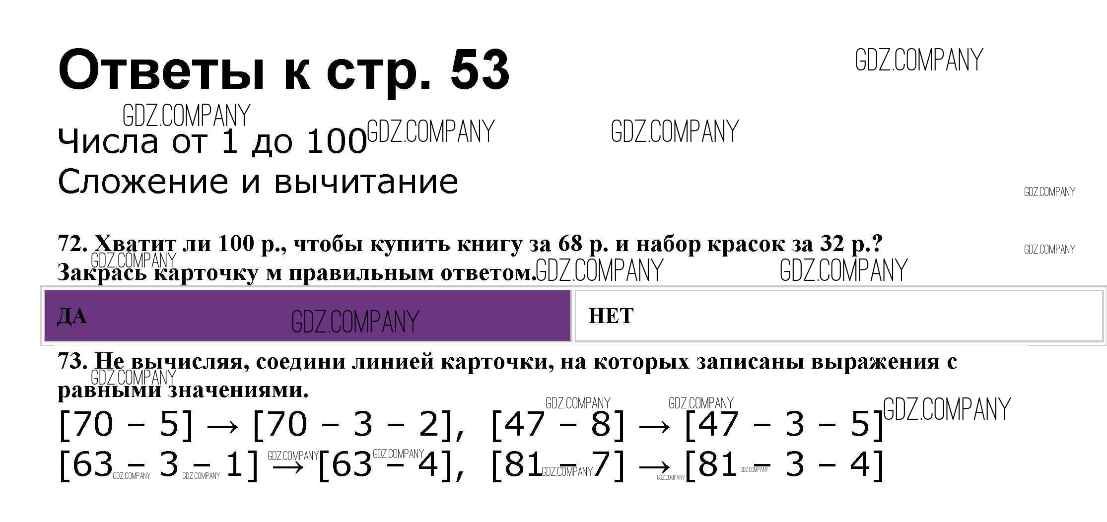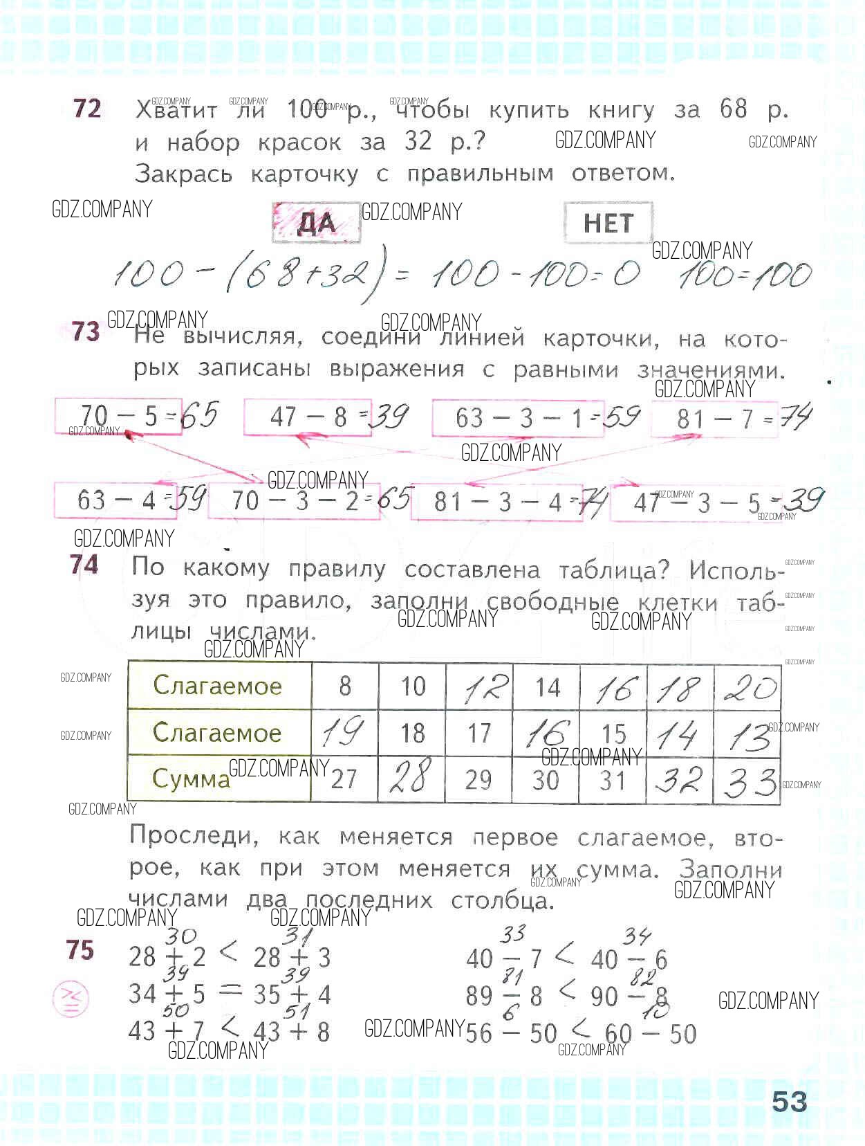 Здесь готовые ответы по Математике за 2 (второй) класс от Волкова, Моро Рабочая тетрадь Школа России (издательство: Просвещение от 2016 г.) № 53