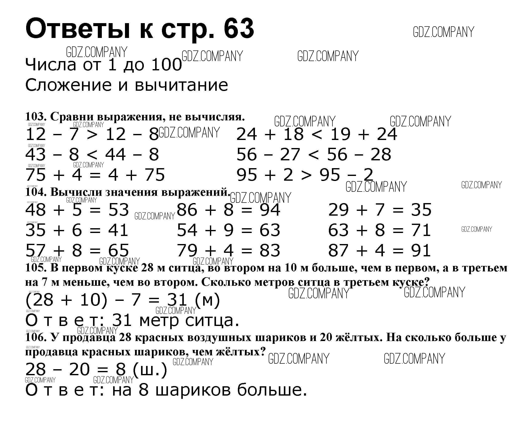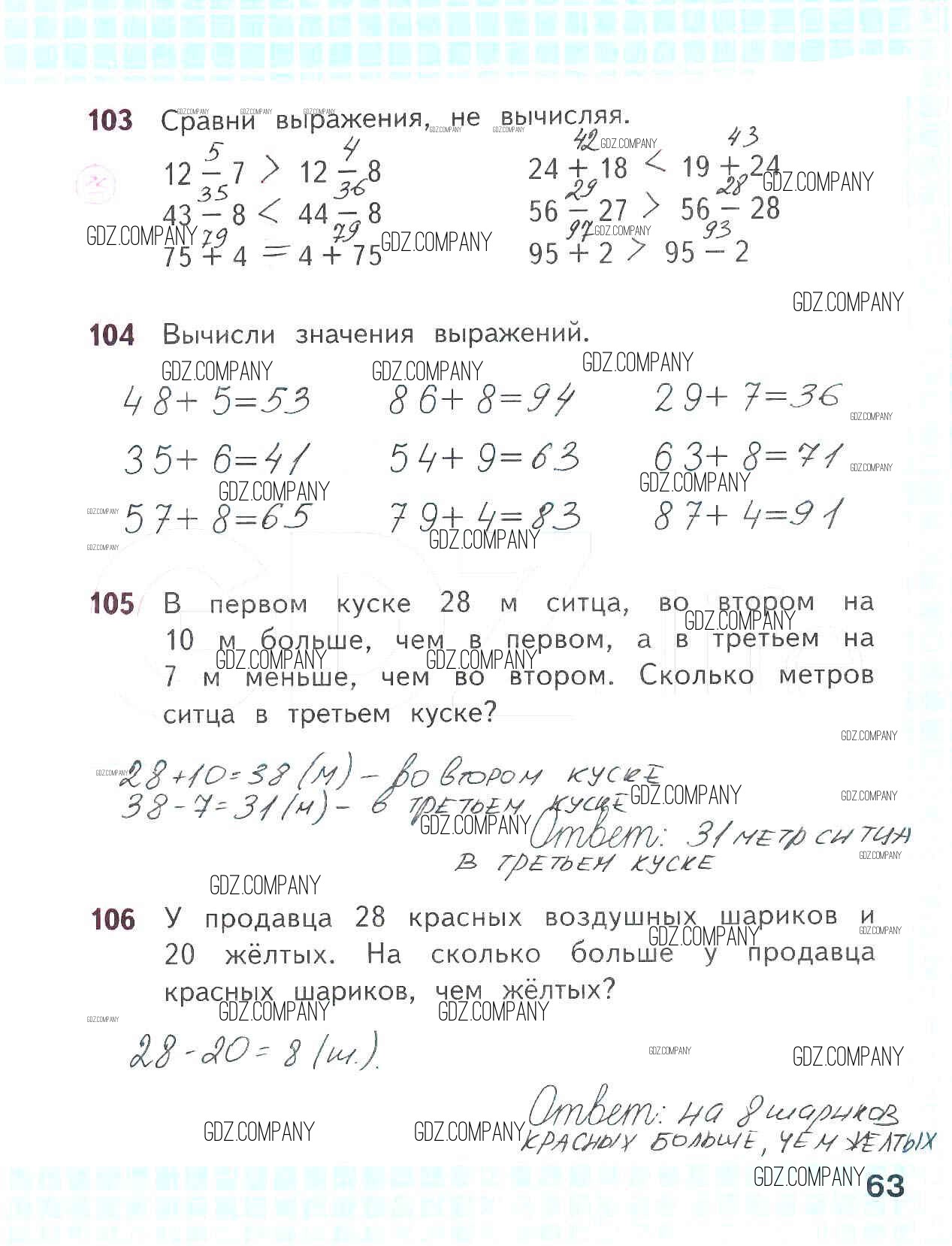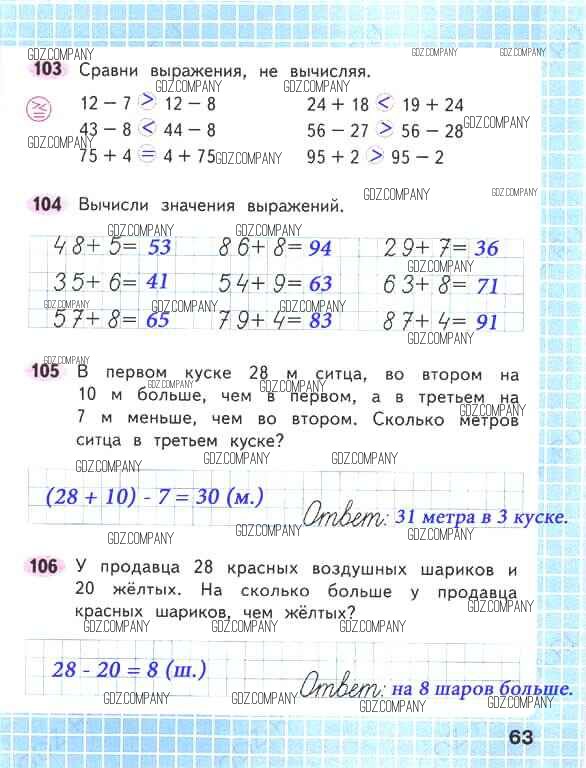 Здесь готовые ответы по Математике за 2 (второй) класс от Волкова, Моро Рабочая тетрадь Школа России (издательство: Просвещение от 2016 г.) № 63