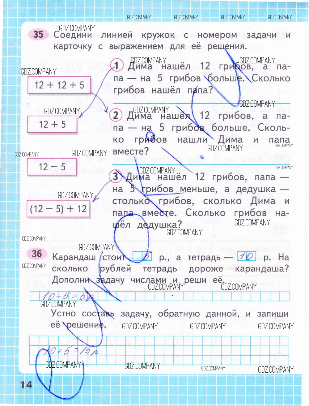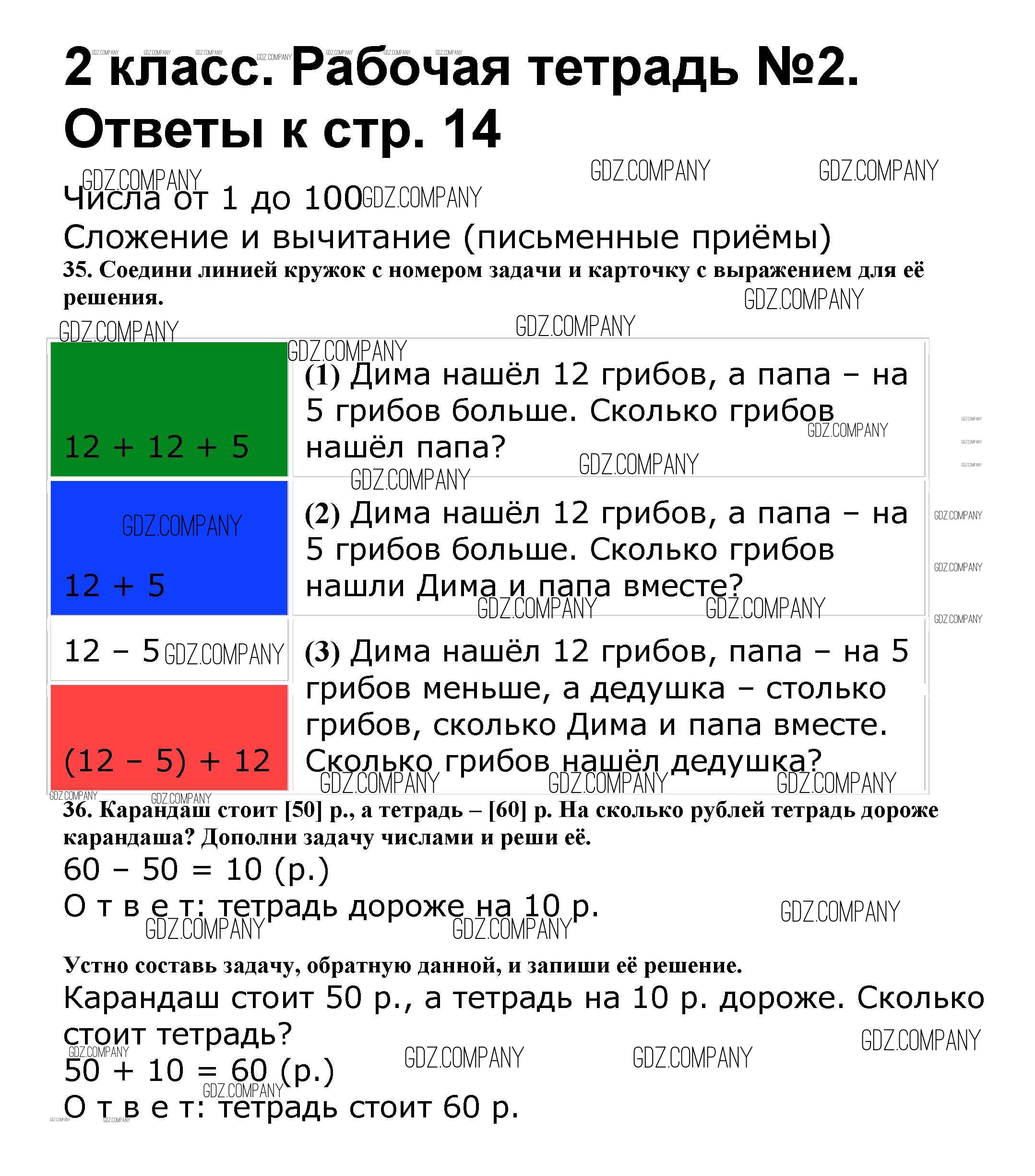 Здесь готовые ответы по Математике за 2 (второй) класс от Волкова, Моро Рабочая тетрадь Школа России (издательство: Просвещение от 2016 г.) № 14