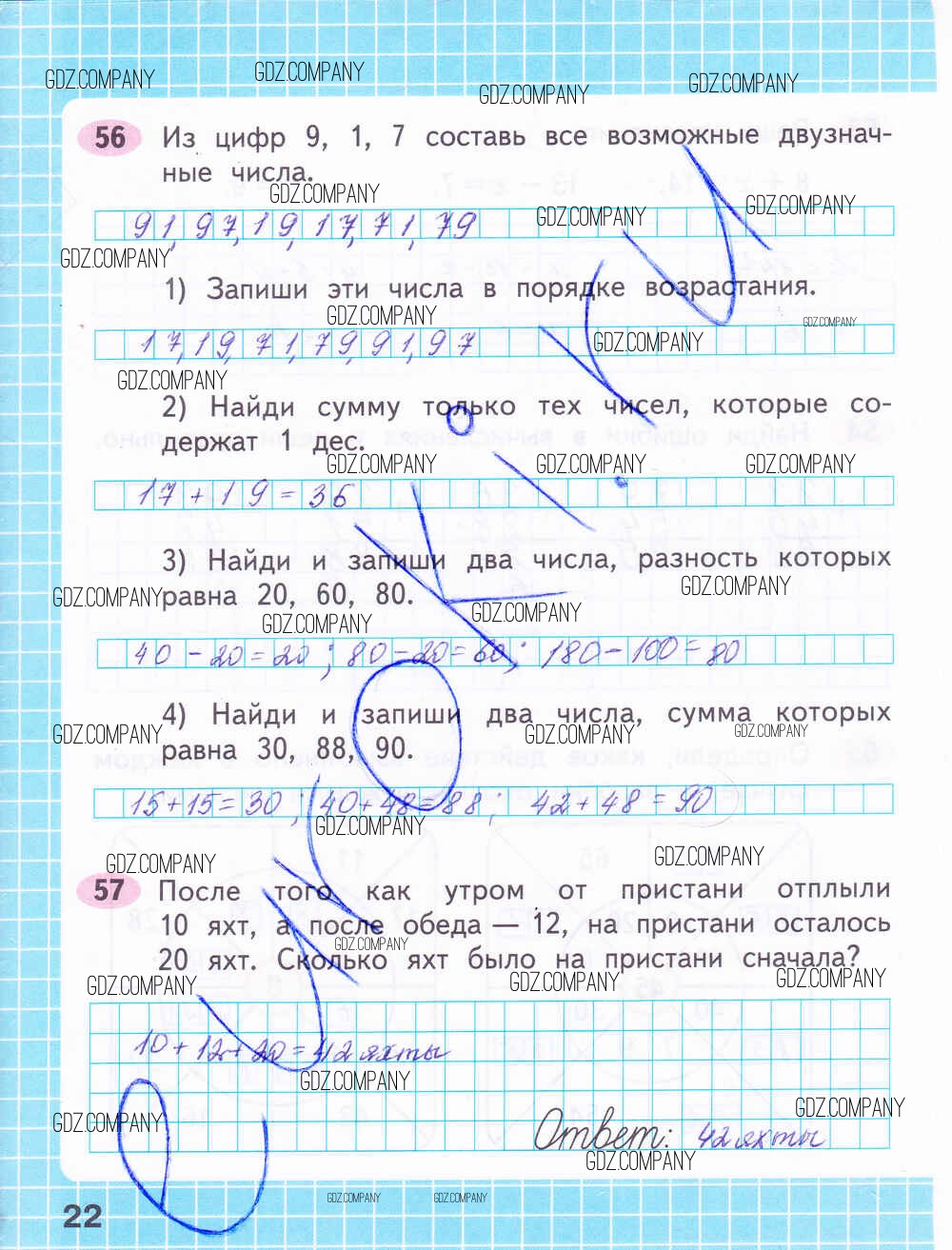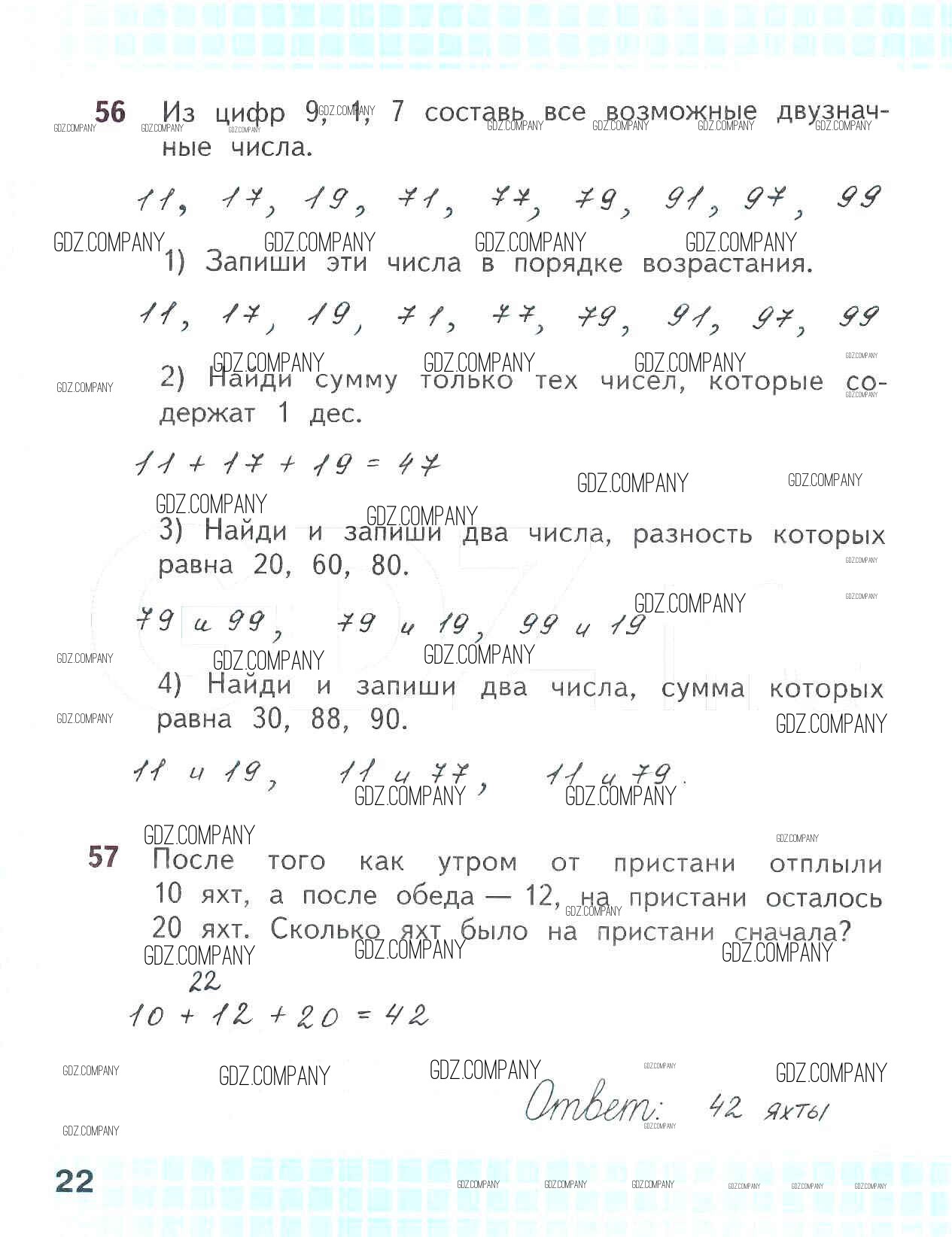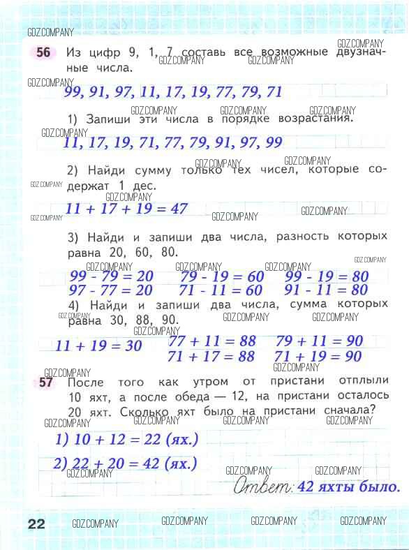 Здесь готовые ответы по Математике за 2 (второй) класс от Волкова, Моро Рабочая тетрадь Школа России (издательство: Просвещение от 2016 г.) № 22