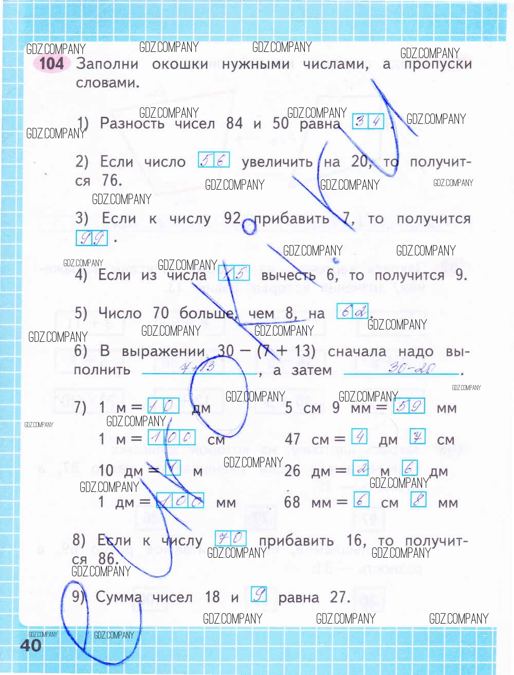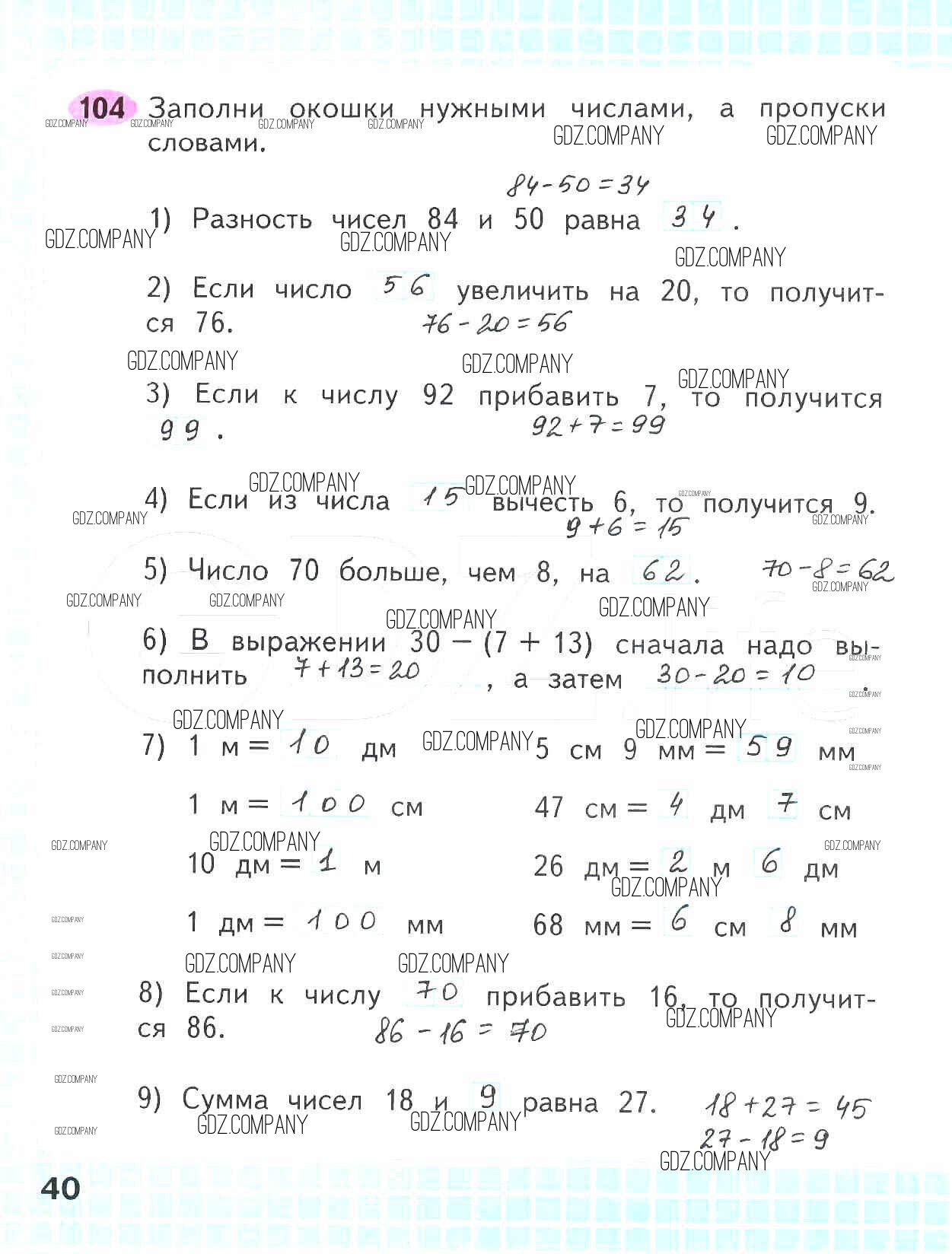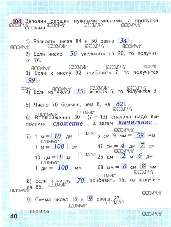 Здесь готовые ответы по Математике за 2 (второй) класс от Волкова, Моро Рабочая тетрадь Школа России (издательство: Просвещение от 2016 г.) № 40