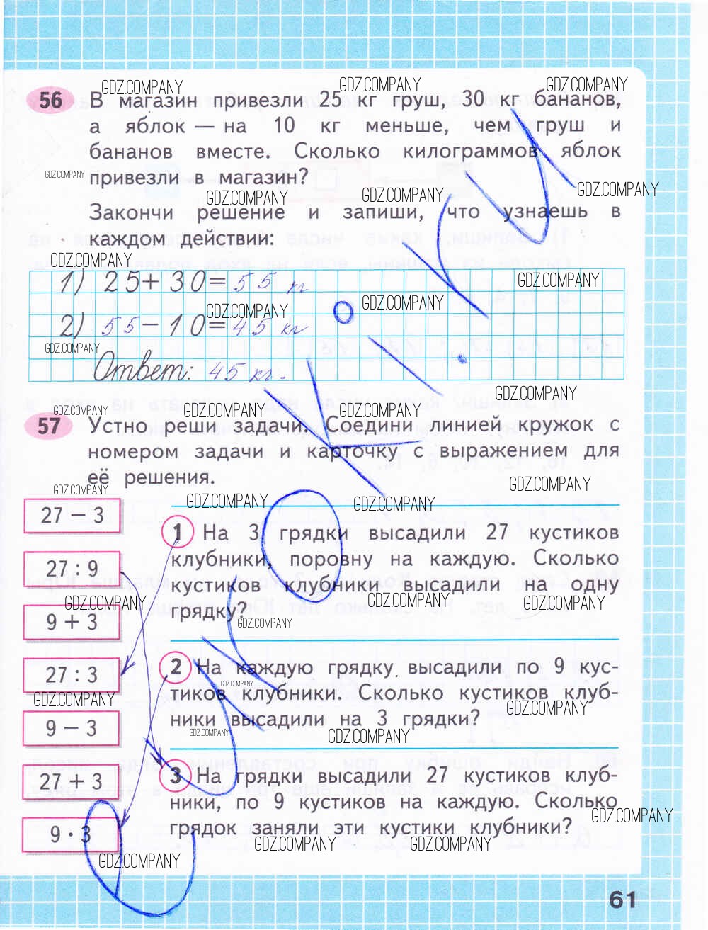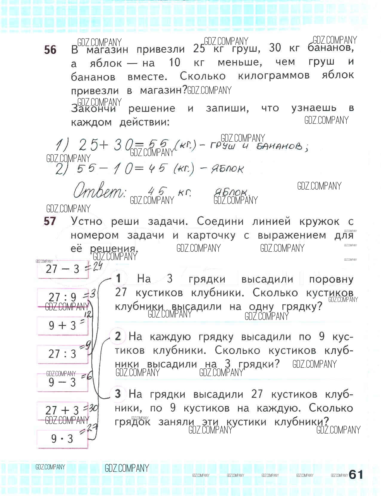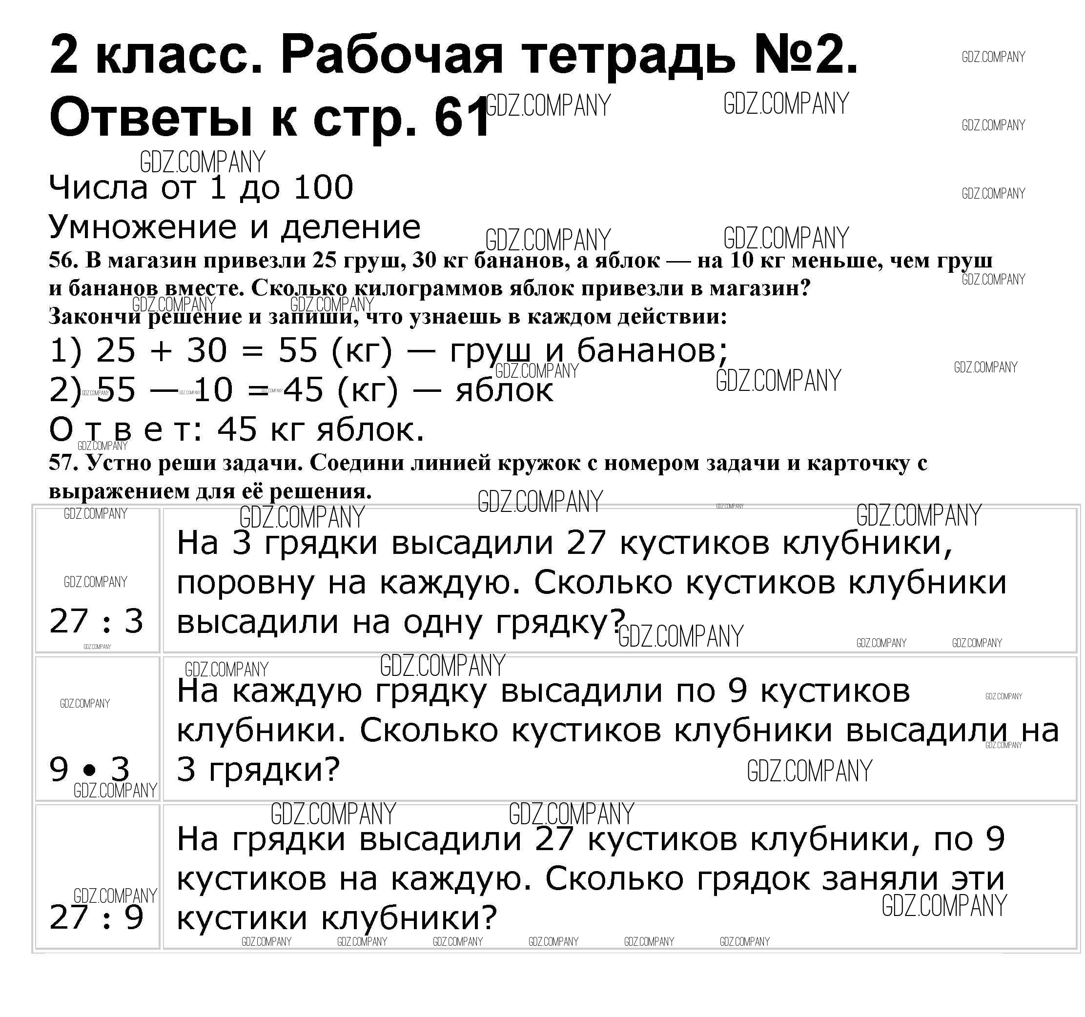 Здесь готовые ответы по Математике за 2 (второй) класс от Волкова, Моро Рабочая тетрадь Школа России (издательство: Просвещение от 2016 г.) № 61