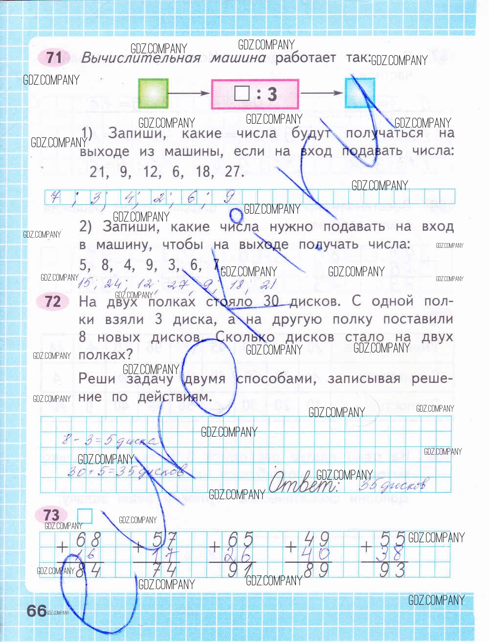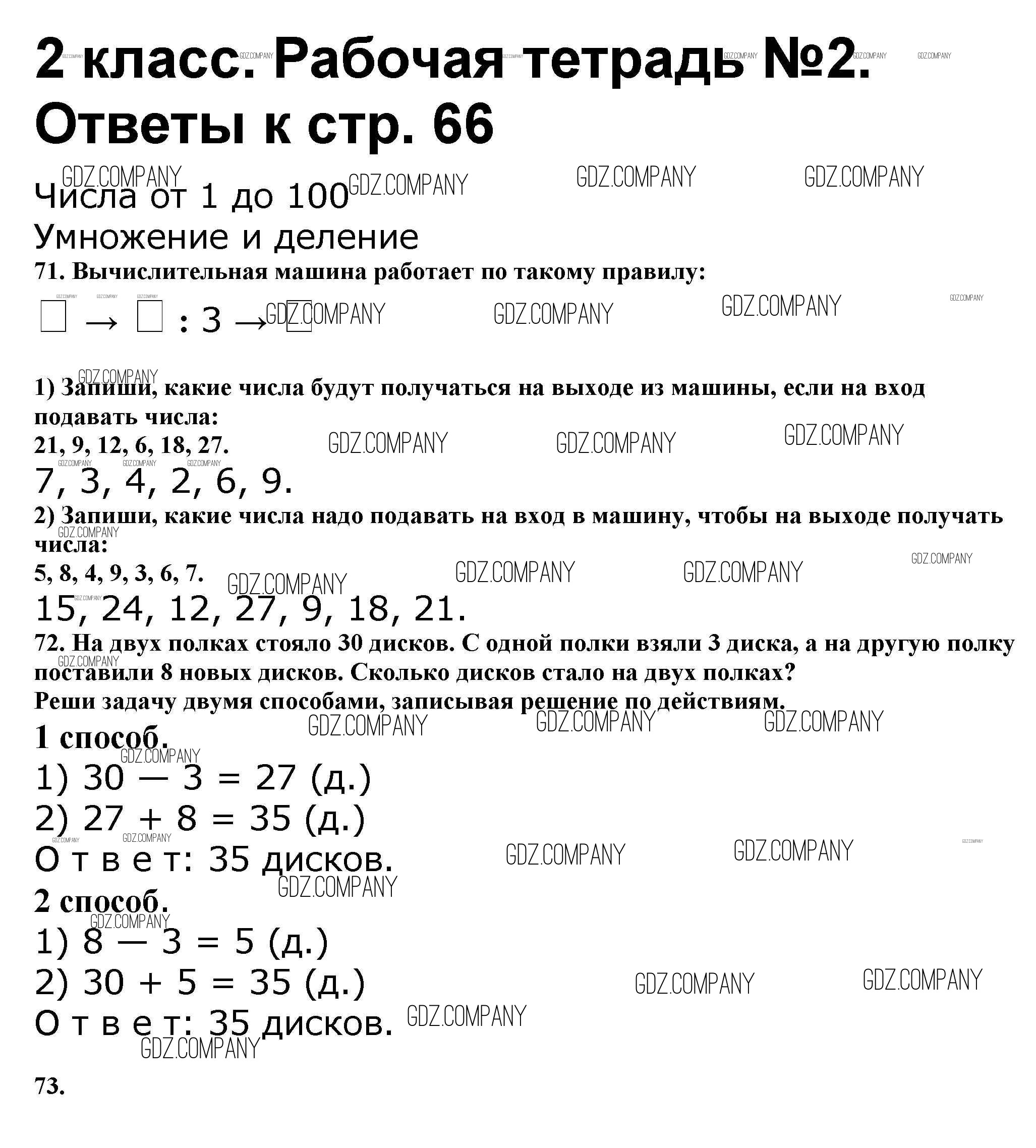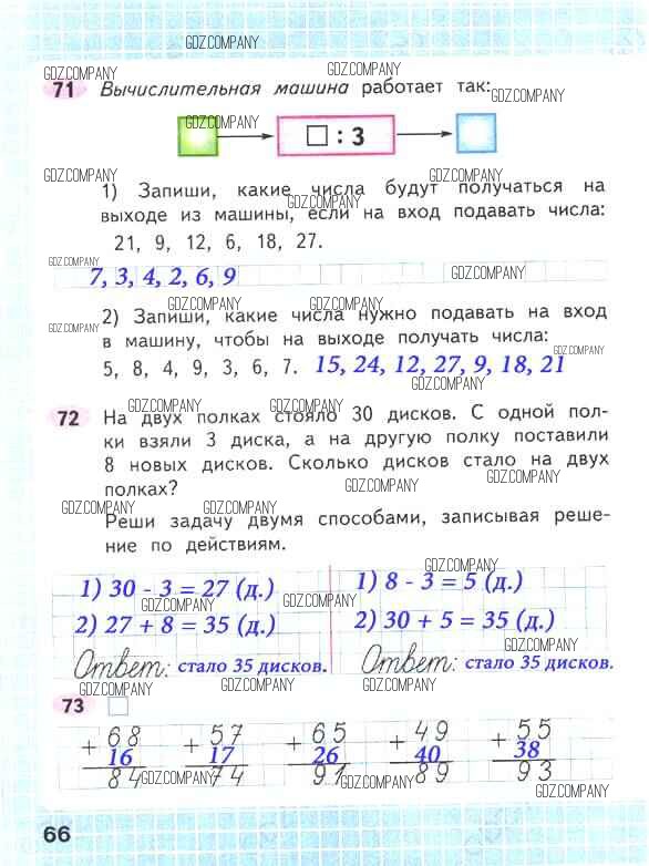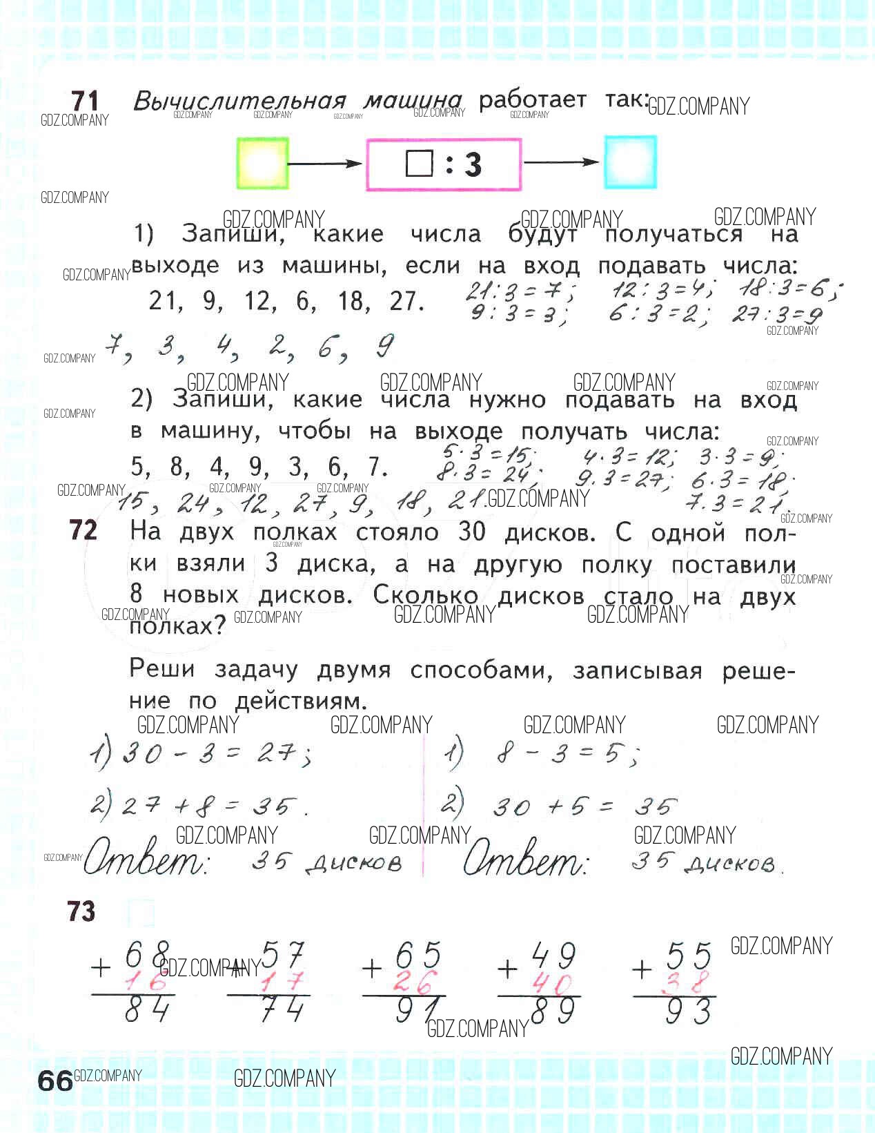 Здесь готовые ответы по Математике за 2 (второй) класс от Волкова, Моро Рабочая тетрадь Школа России (издательство: Просвещение от 2016 г.) № 66