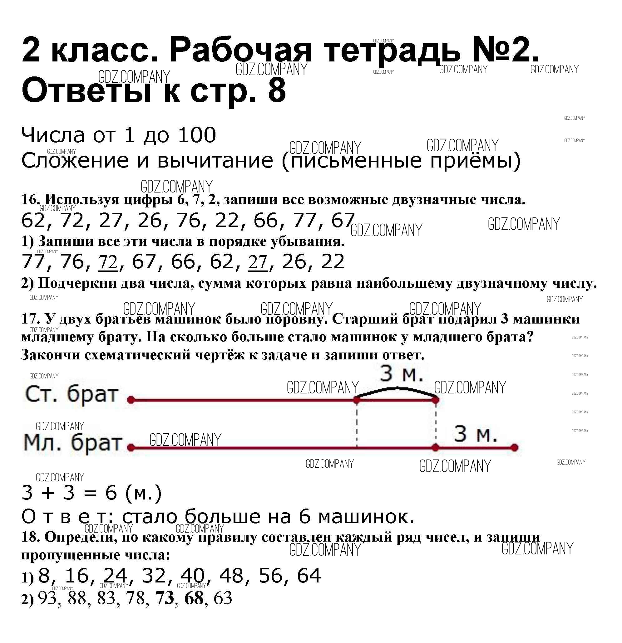 Здесь готовые ответы по Математике за 2 (второй) класс от Волкова, Моро Рабочая тетрадь Школа России (издательство: Просвещение от 2016 г.) № 8