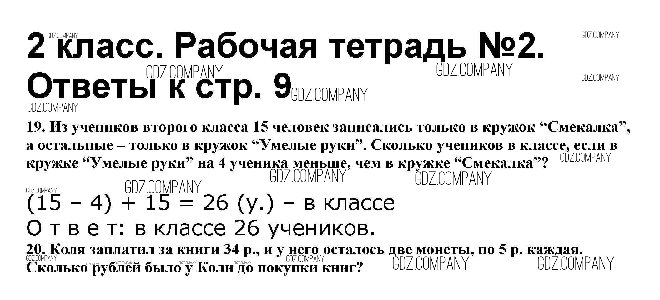 Здесь готовые ответы по Математике за 2 (второй) класс от Волкова, Моро Рабочая тетрадь Школа России (издательство: Просвещение от 2016 г.) № 9