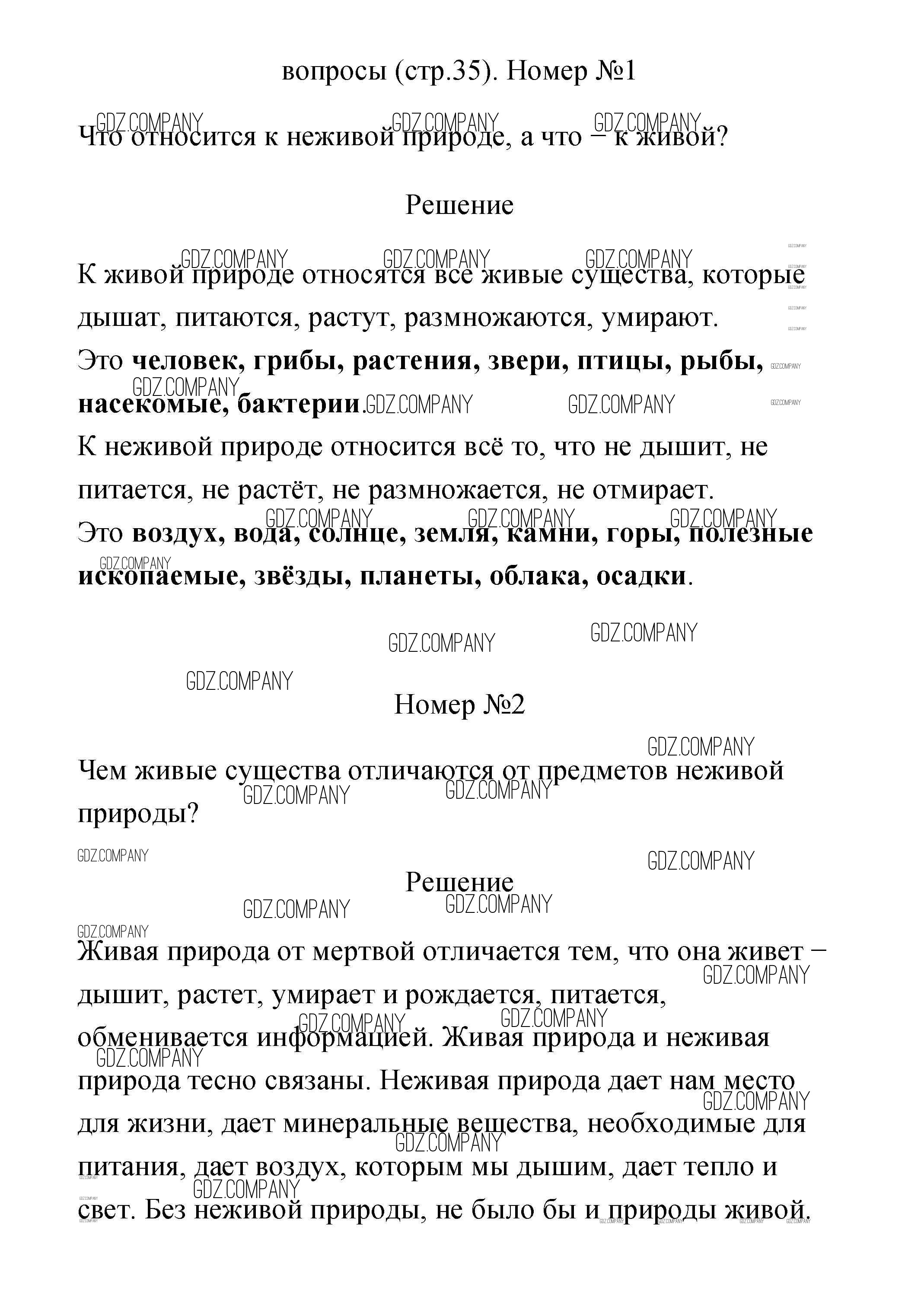 Здесь готовые ответы по Окружающему миру за 2 (второй) класс от Плешаков Учебник (издательство: Просвещение от 2017 г.) № 35