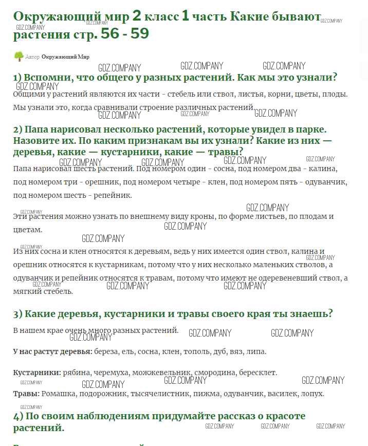 Здесь готовые ответы по Окружающему миру за 2 (второй) класс от Плешаков Учебник (издательство: Просвещение от 2017 г.) № 56