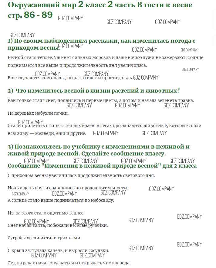 Здесь готовые ответы по Окружающему миру за 2 (второй) класс от Плешаков Учебник (издательство: Просвещение от 2017 г.) № 86