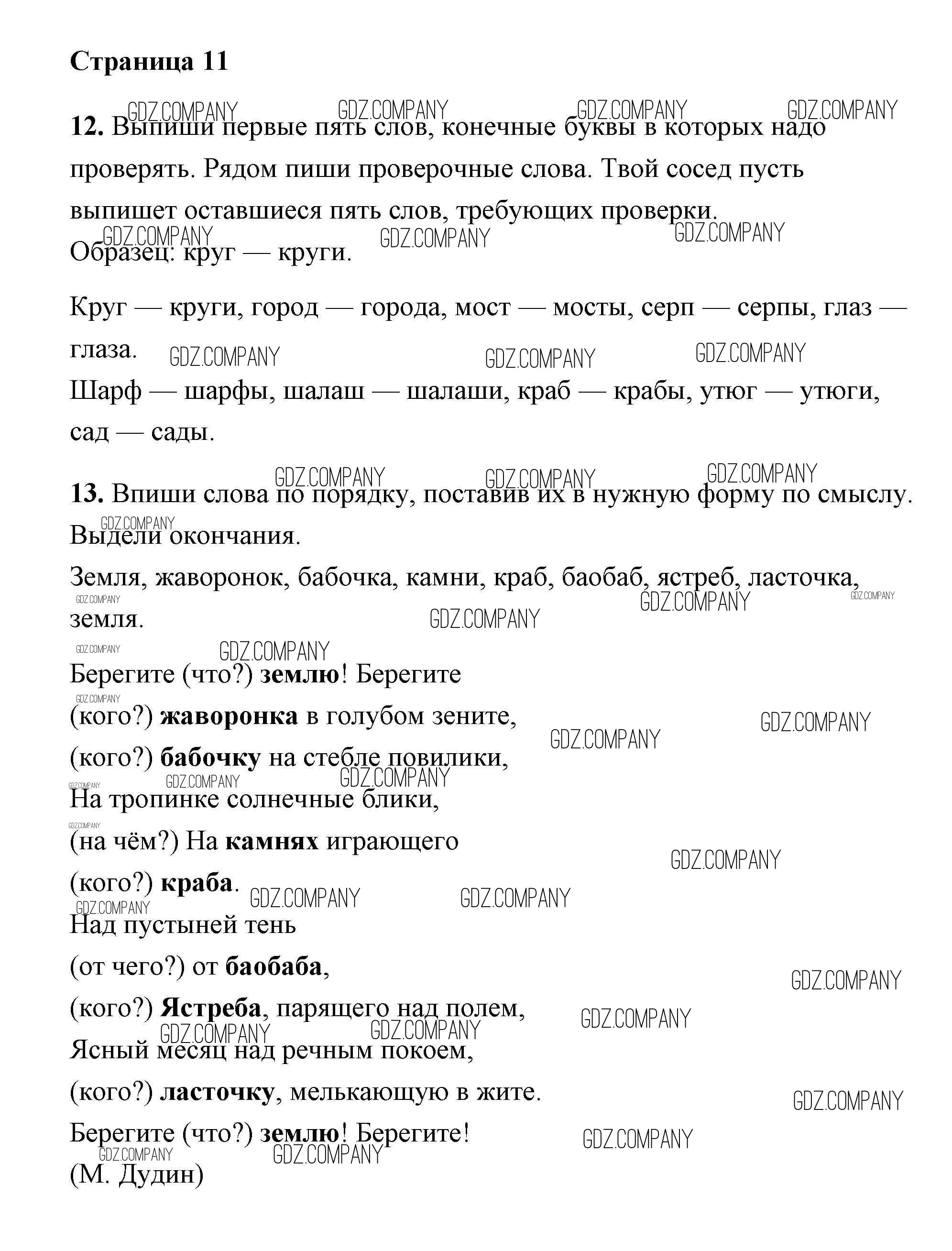 Здесь готовые ответы по Русскому языку за 2 (второй) класс от Байкова, Малаховская, Гольфман Тетрадь для самостоятельной работы (издательство: Академкнига от 2017 г.) № 11