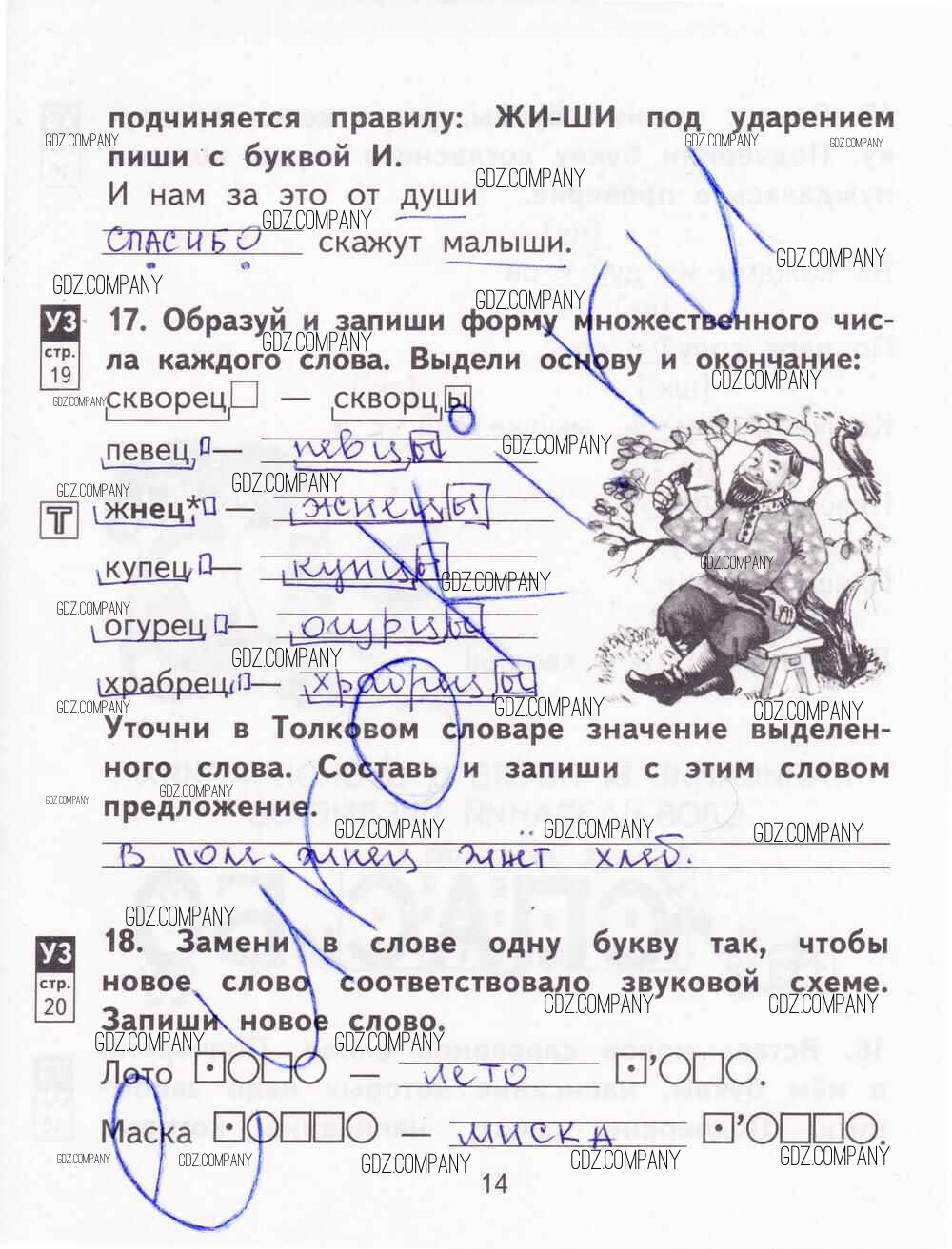 Здесь готовые ответы по Русскому языку за 2 (второй) класс от Байкова, Малаховская, Гольфман Тетрадь для самостоятельной работы (издательство: Академкнига от 2017 г.) № 14