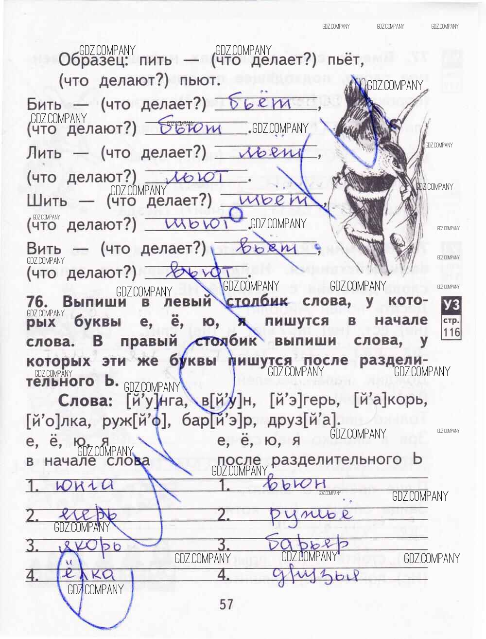 Здесь готовые ответы по Русскому языку за 2 (второй) класс от Байкова, Малаховская, Гольфман Тетрадь для самостоятельной работы   (издательство: Академкнига от 2017 г.) № 57