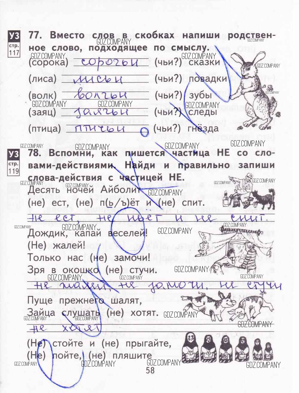 Здесь готовые ответы по Русскому языку за 2 (второй) класс от Байкова, Малаховская, Гольфман Тетрадь для самостоятельной работы   (издательство: Академкнига от 2017 г.) № 58
