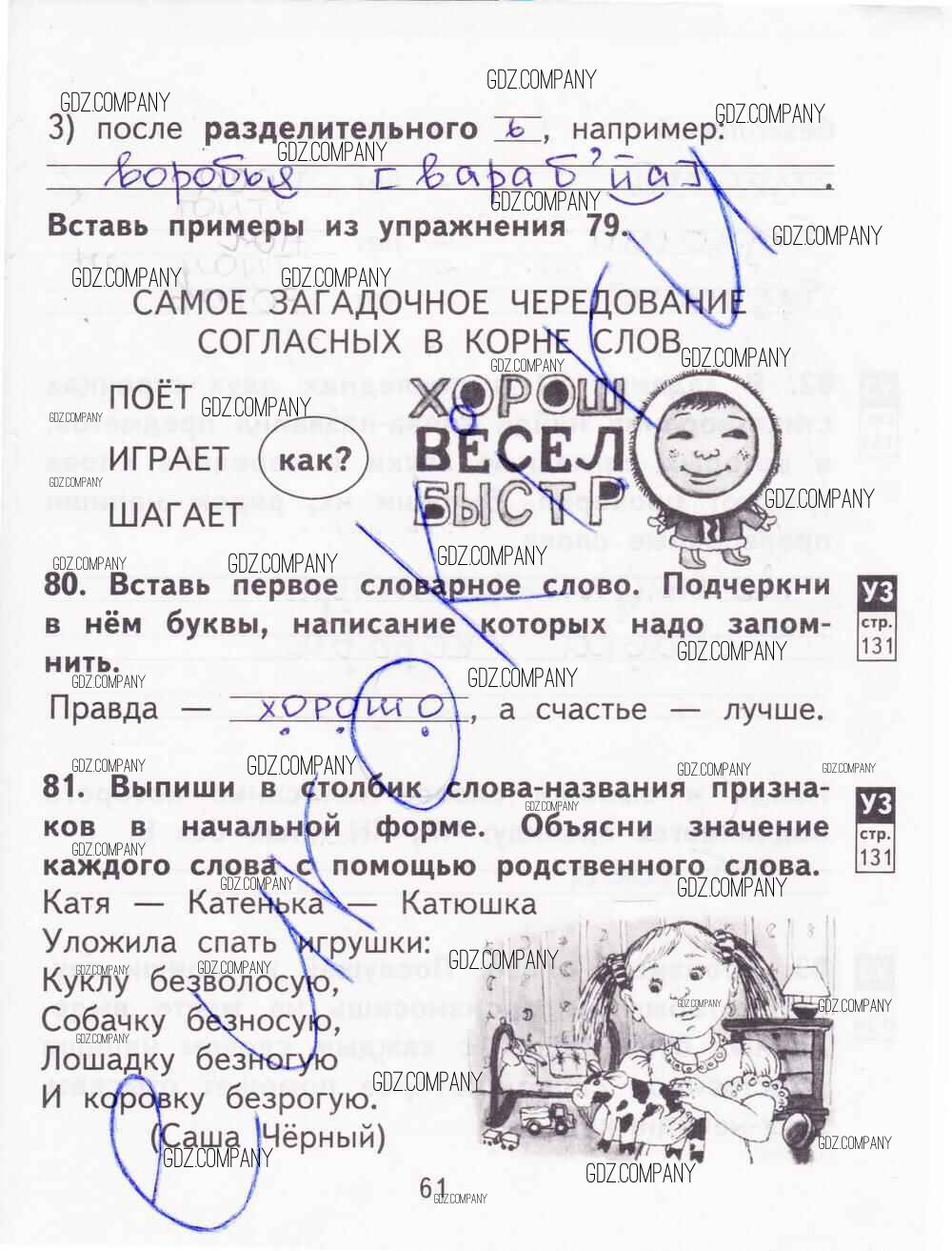 Здесь готовые ответы по Русскому языку за 2 (второй) класс от Байкова, Малаховская, Гольфман Тетрадь для самостоятельной работы (издательство: Академкнига от 2017 г.) № 61
